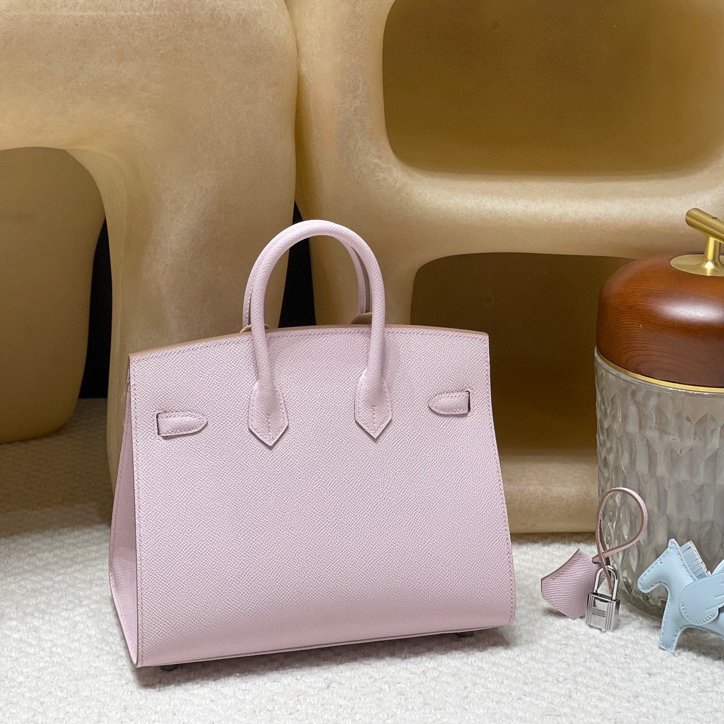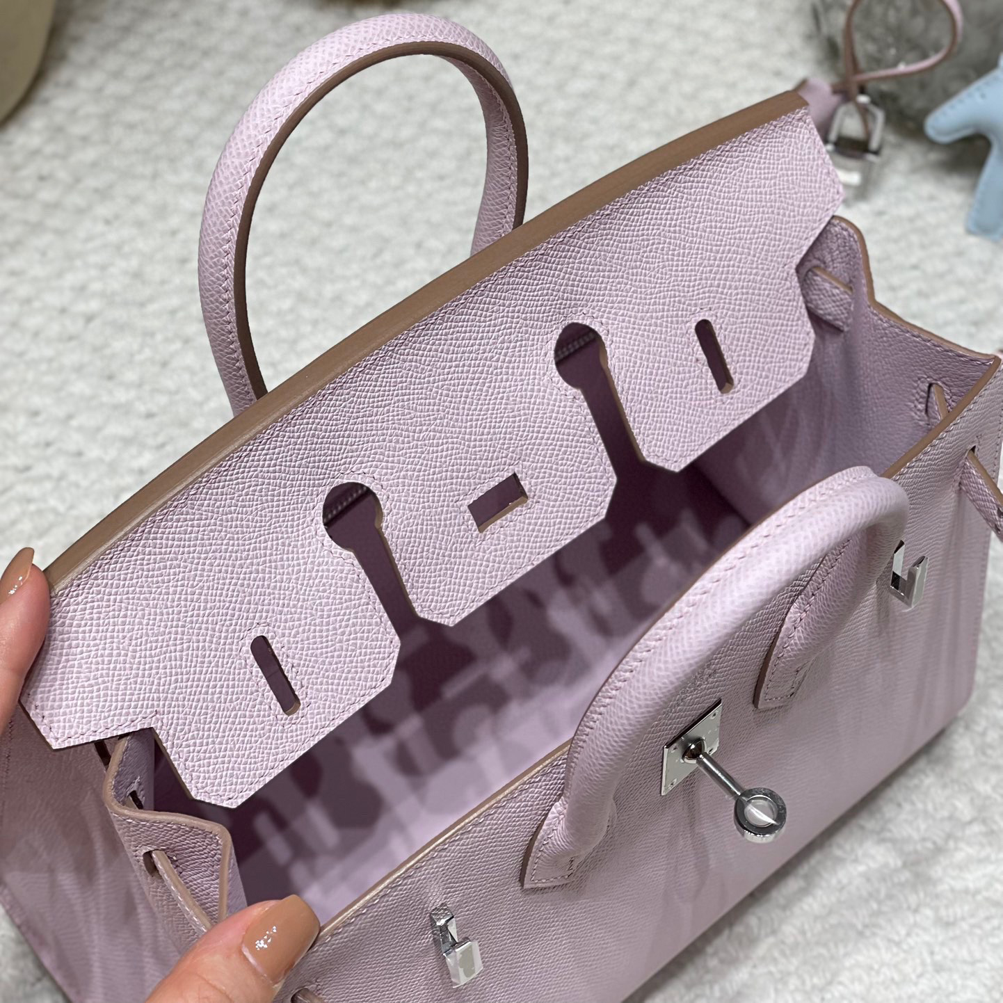 Epsom 09/Mauve Pale Silver Hardware Full Hand-Stitchin Epsom Birkin 25cm Sellier