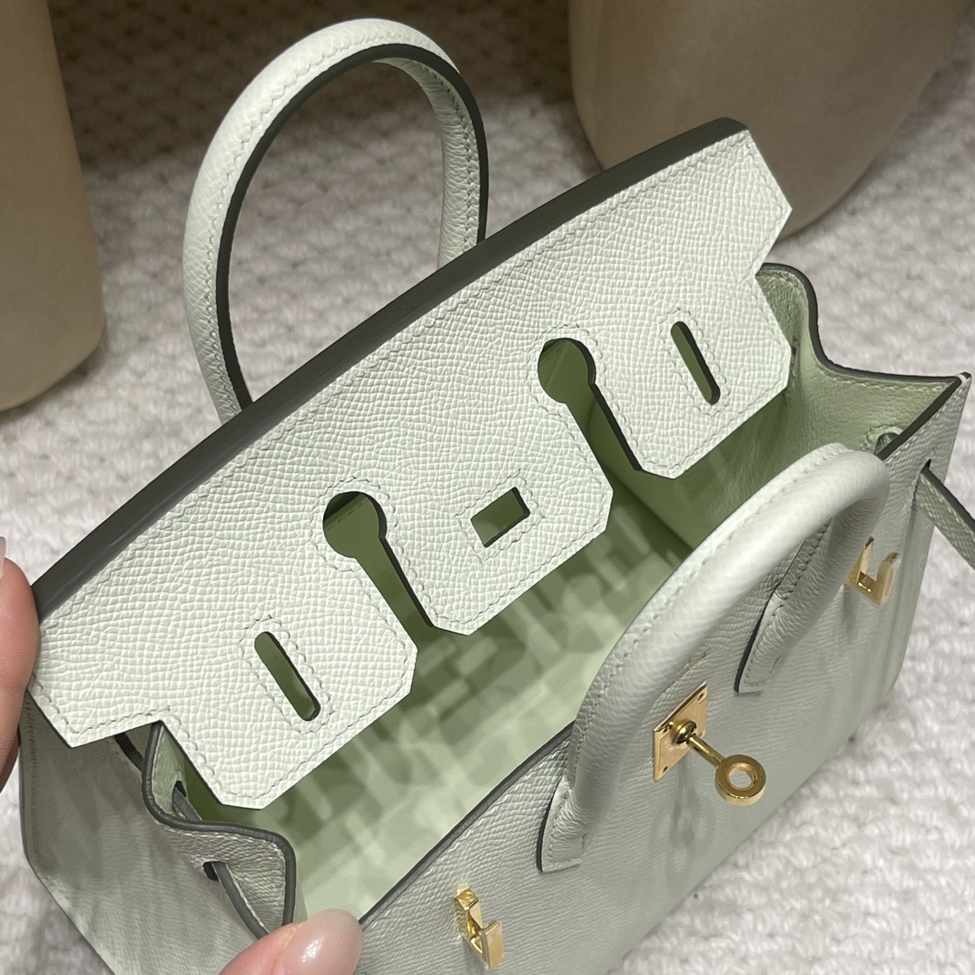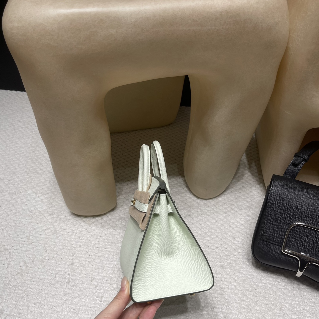 Hermès Birkin 20cm Sellier Saddle Stitch Epsom Mini 0S / vertdeau Silver Hardware Full Hand-Stitching Epsom
