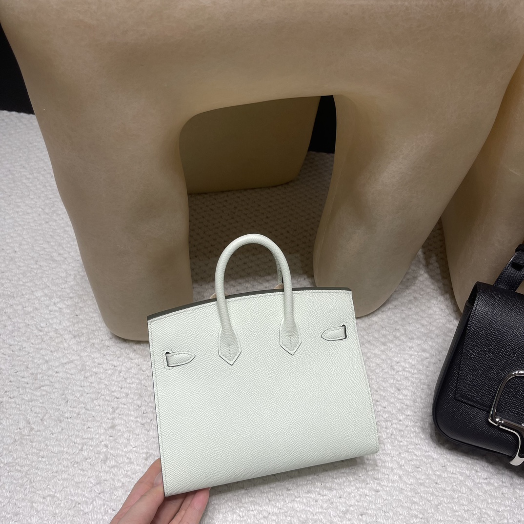 Hermès Birkin 20cm Sellier Saddle Stitch Epsom Mini 0S / vertdeau   Silver Hardware  Full Hand-Stitching    Epsom