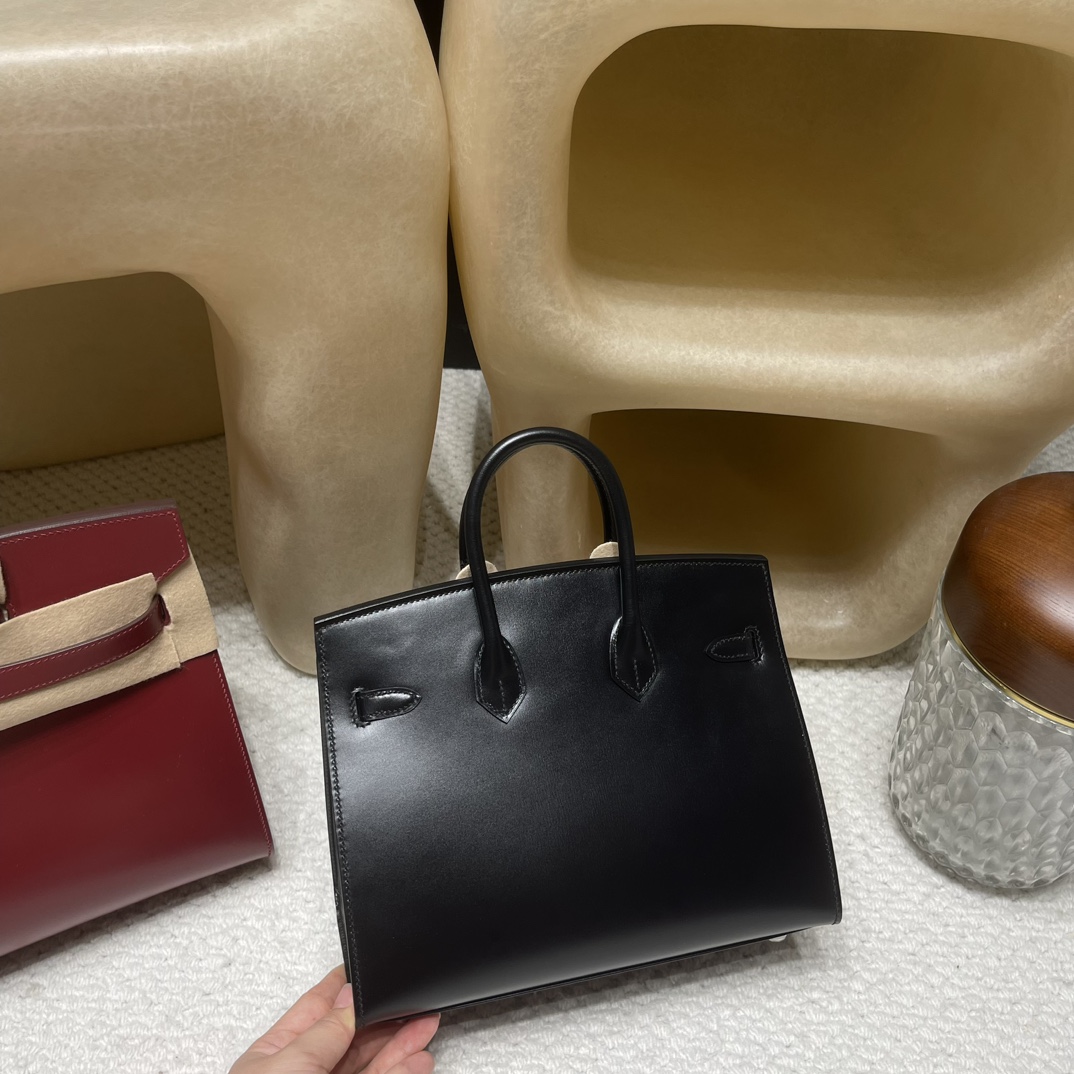 Hermès 25 Birkin Sellier Box  89 / NOIR  Silver Hardware  Full Hand-Stitching  Box