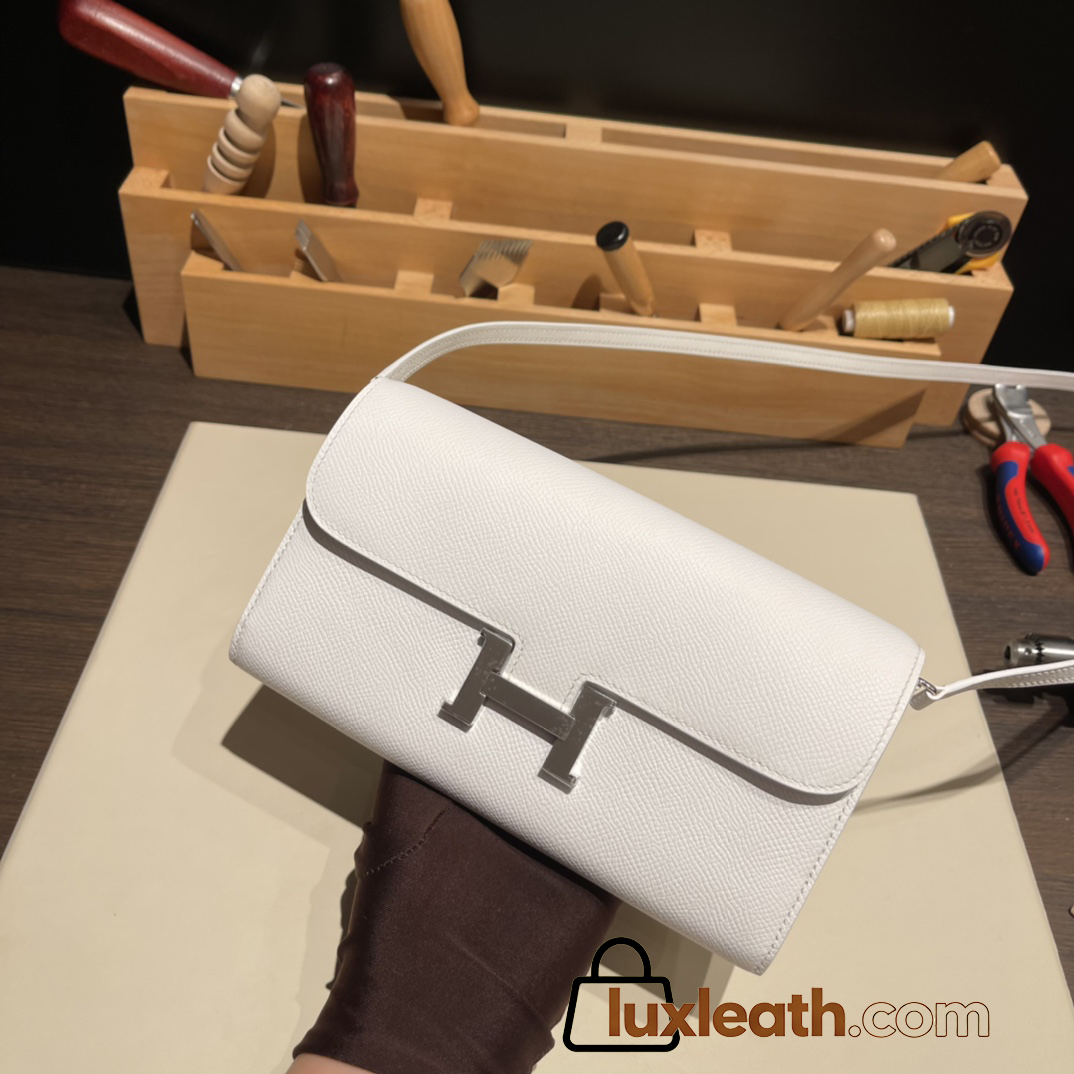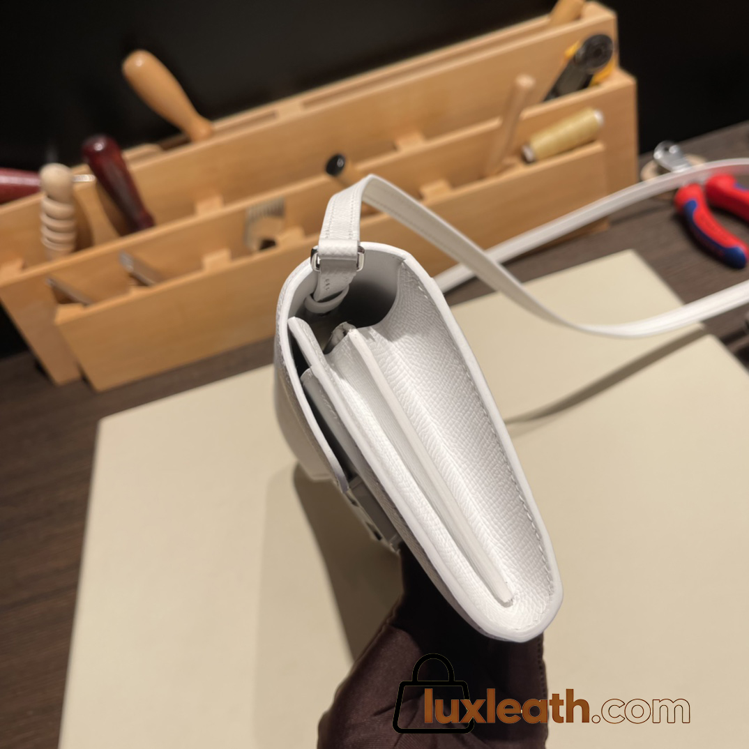 01/White (Blanc) / Silver Hardware   Full Handmade Kelly to go   epsom