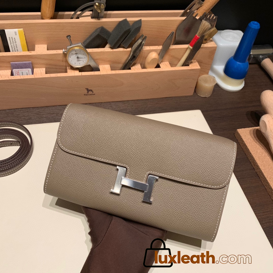 18/Étoupe Grey (Étoupe)   Silver Hardware Full Handmade Kelly to go   epsom