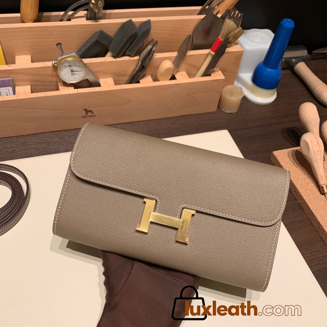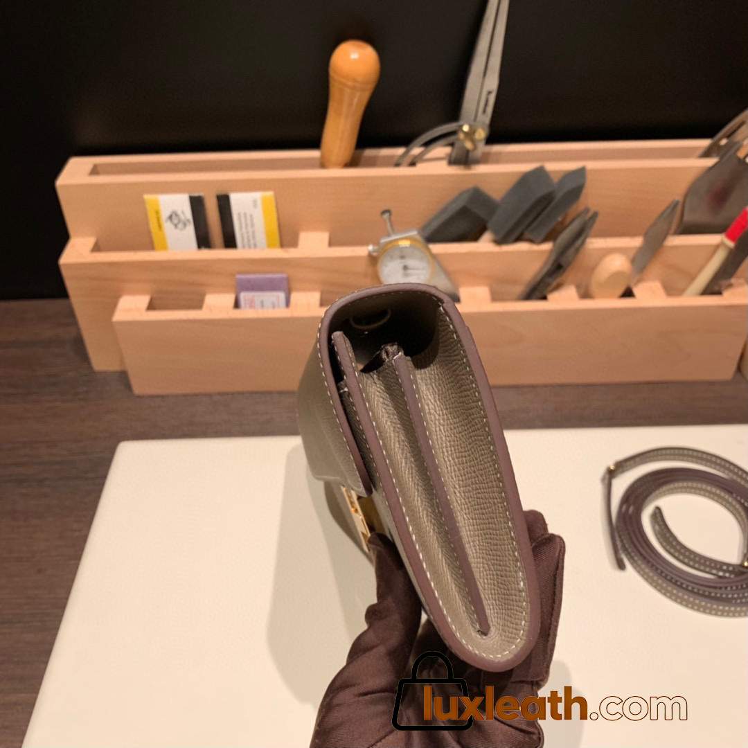 18/Étoupe Grey (Étoupe)   Gold Hardware  Full Handmade Kelly to go   epsom
