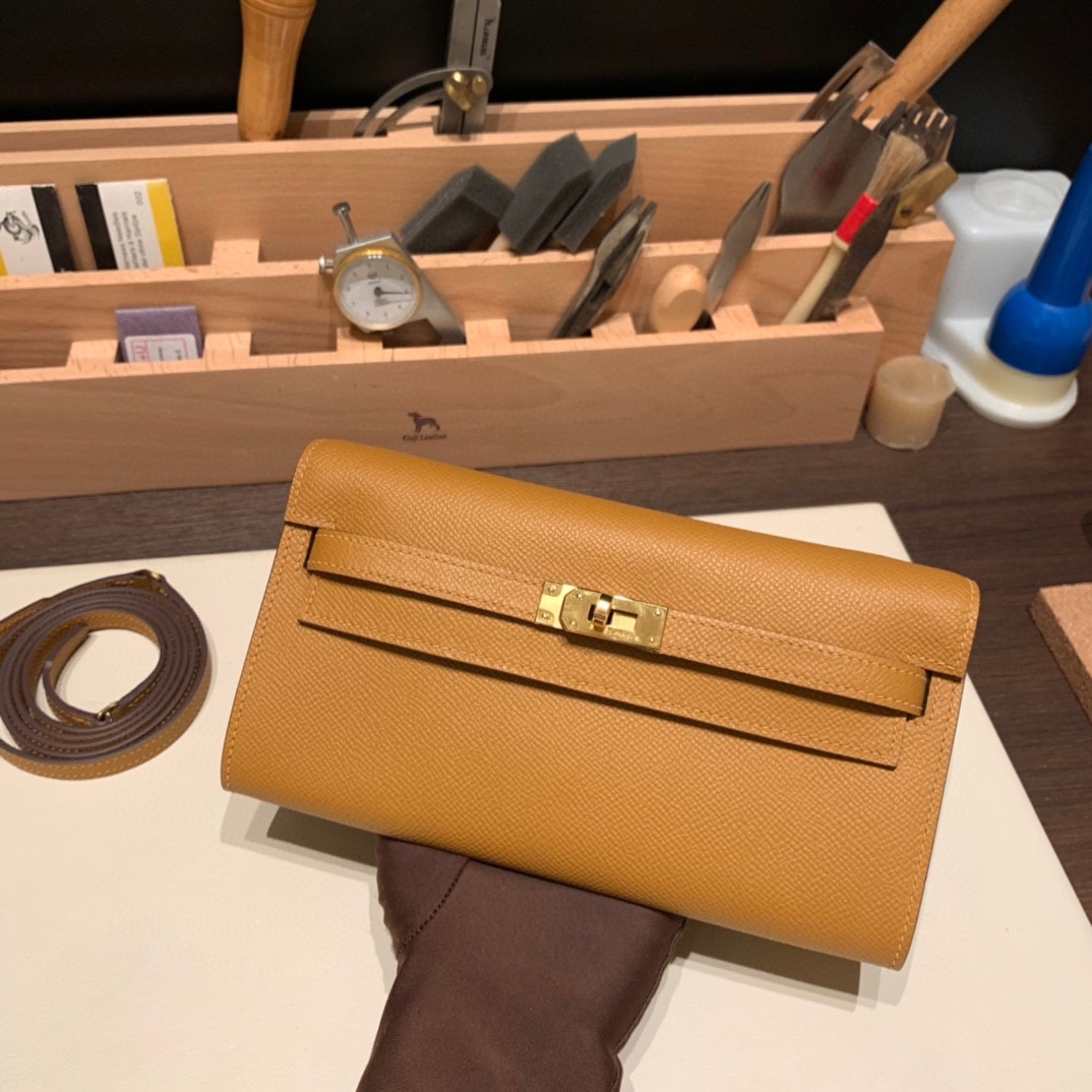2S/Sesame Gold Hardware Full Handmade Kelly Wallet Long To Go epsom