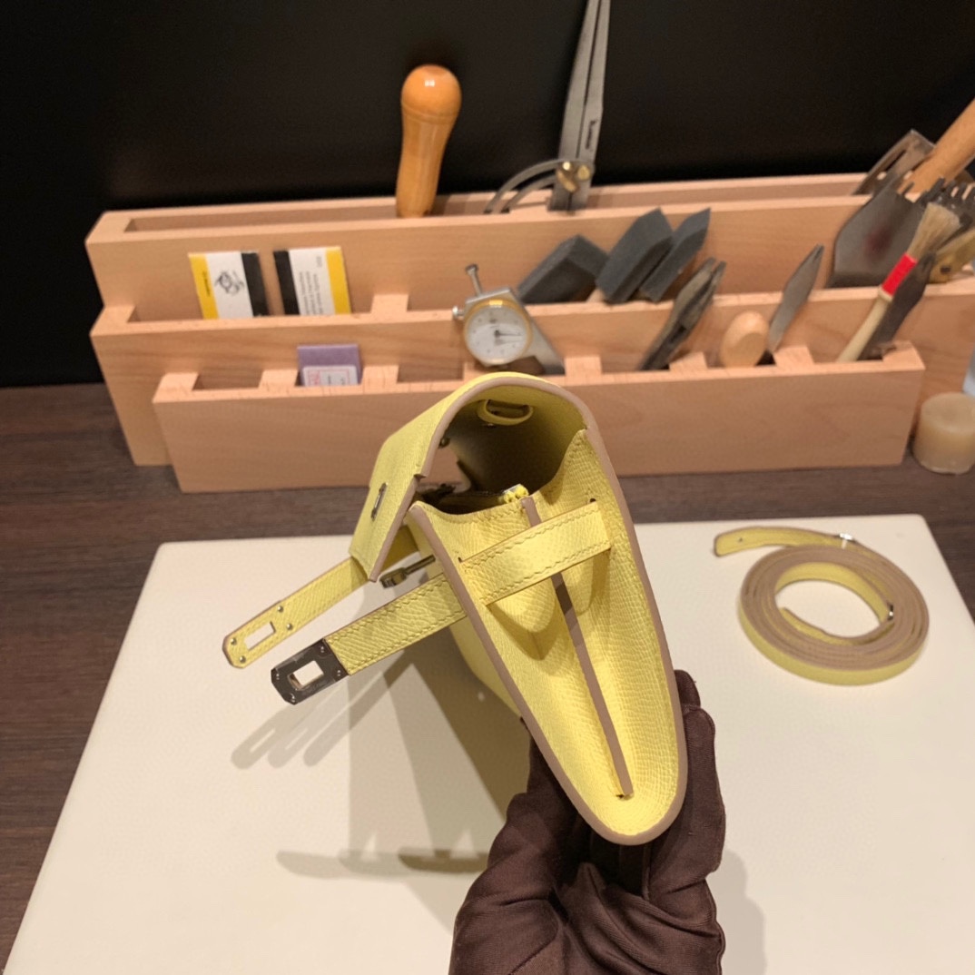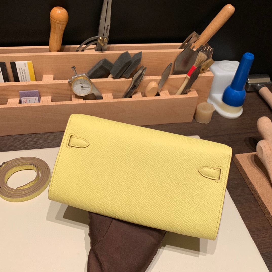 epsom 9R/Lime Silver Hardware Full Handmade Kelly Wallet Long To Go epsom