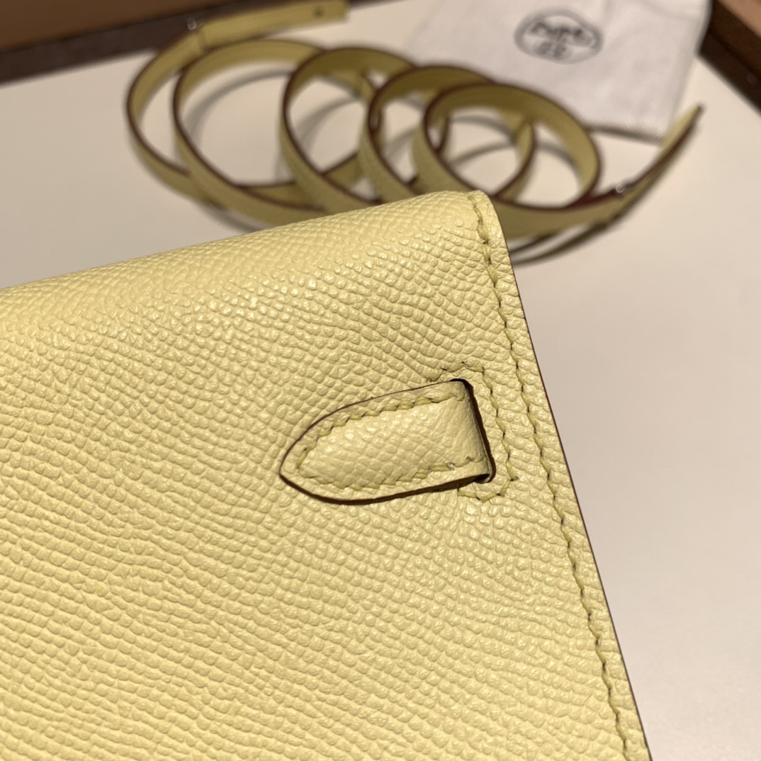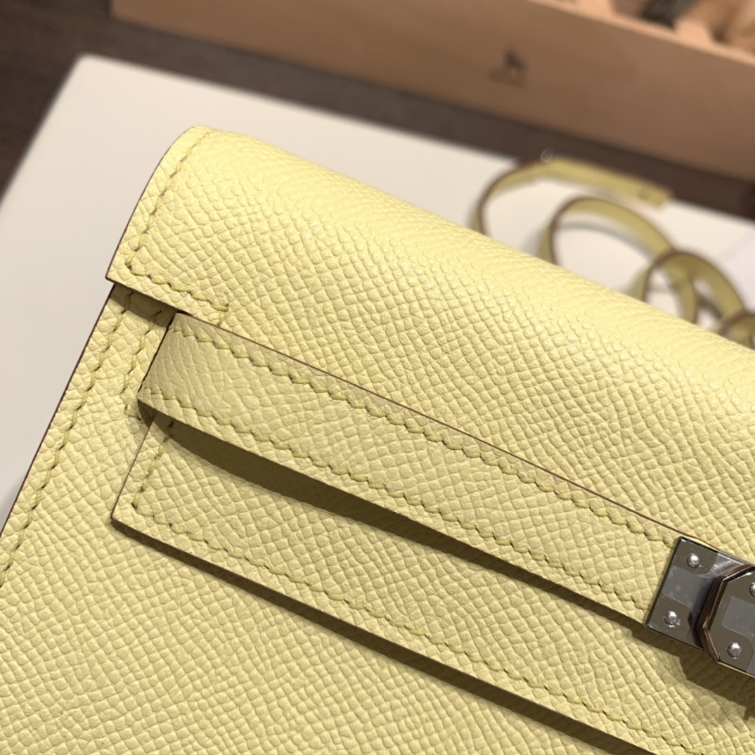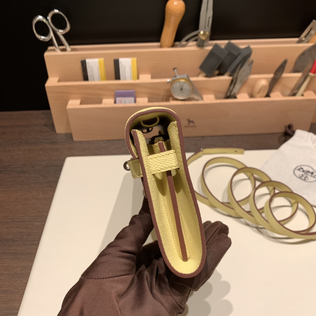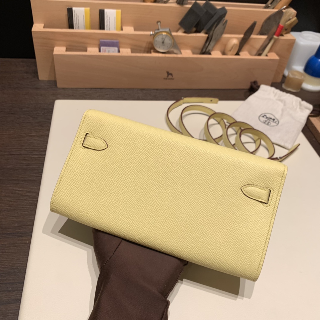 1Z/Jaune Poussin Silver Hardware Full Handmade Kelly Wallet Long To Go epsom