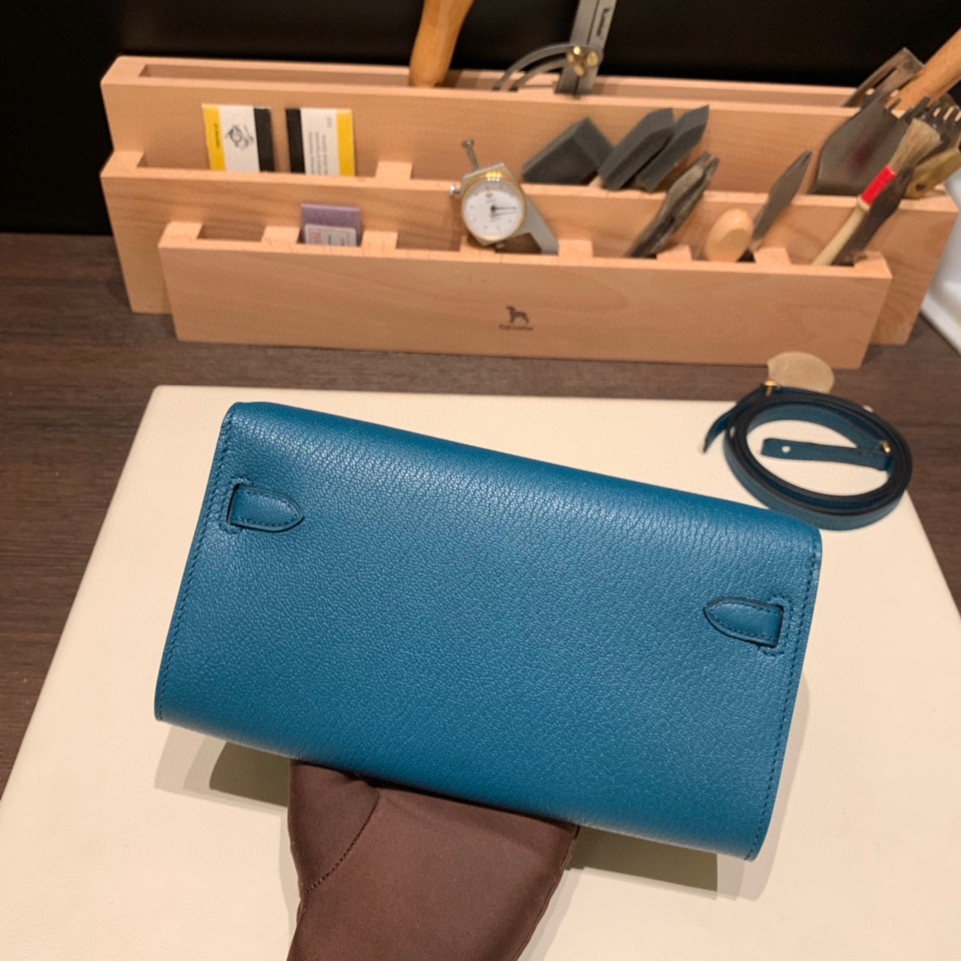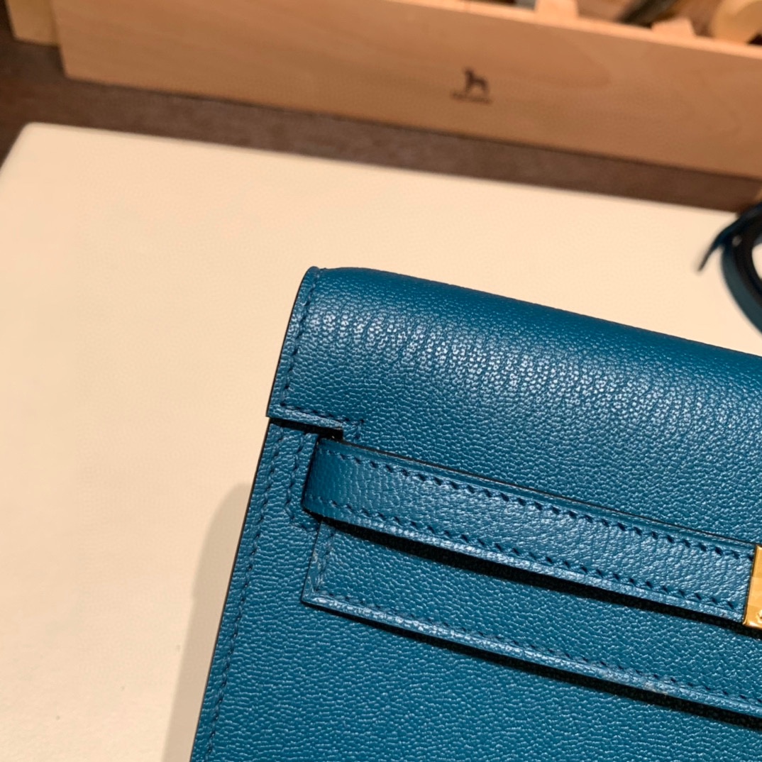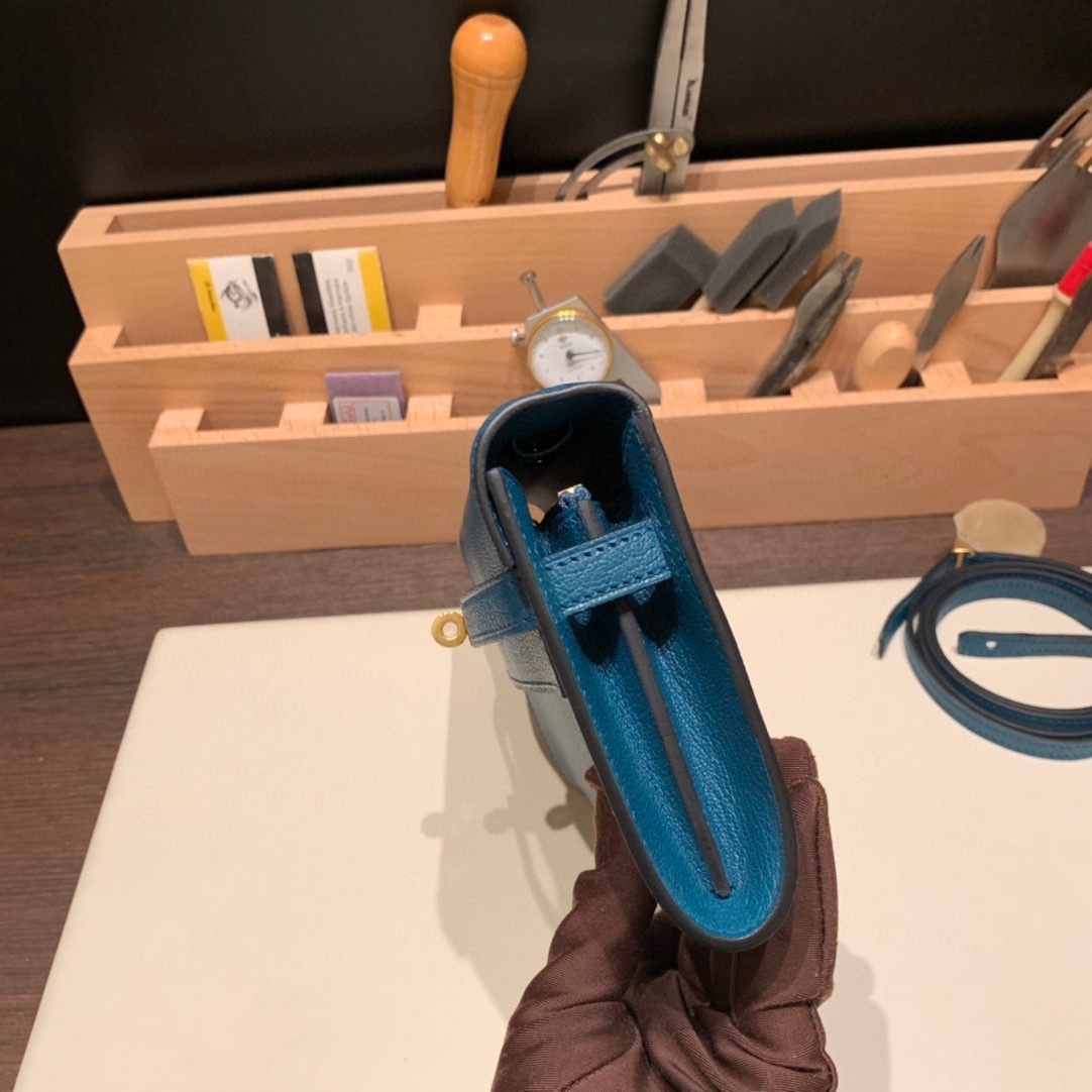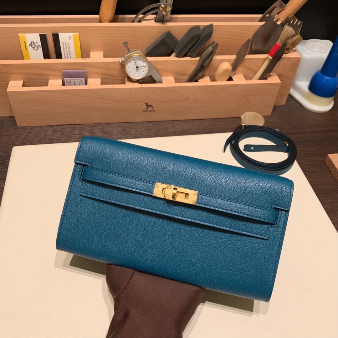 Chevre W0/Vert Bosphore   Gold Hardware  Full Handmade Kelly Wallet Long To Go   epsom