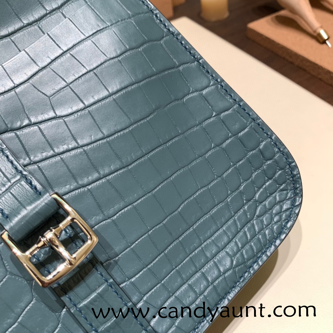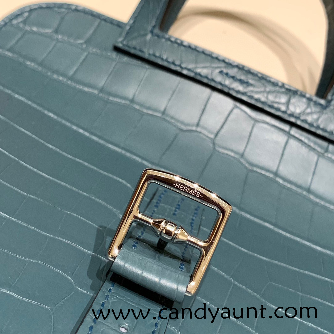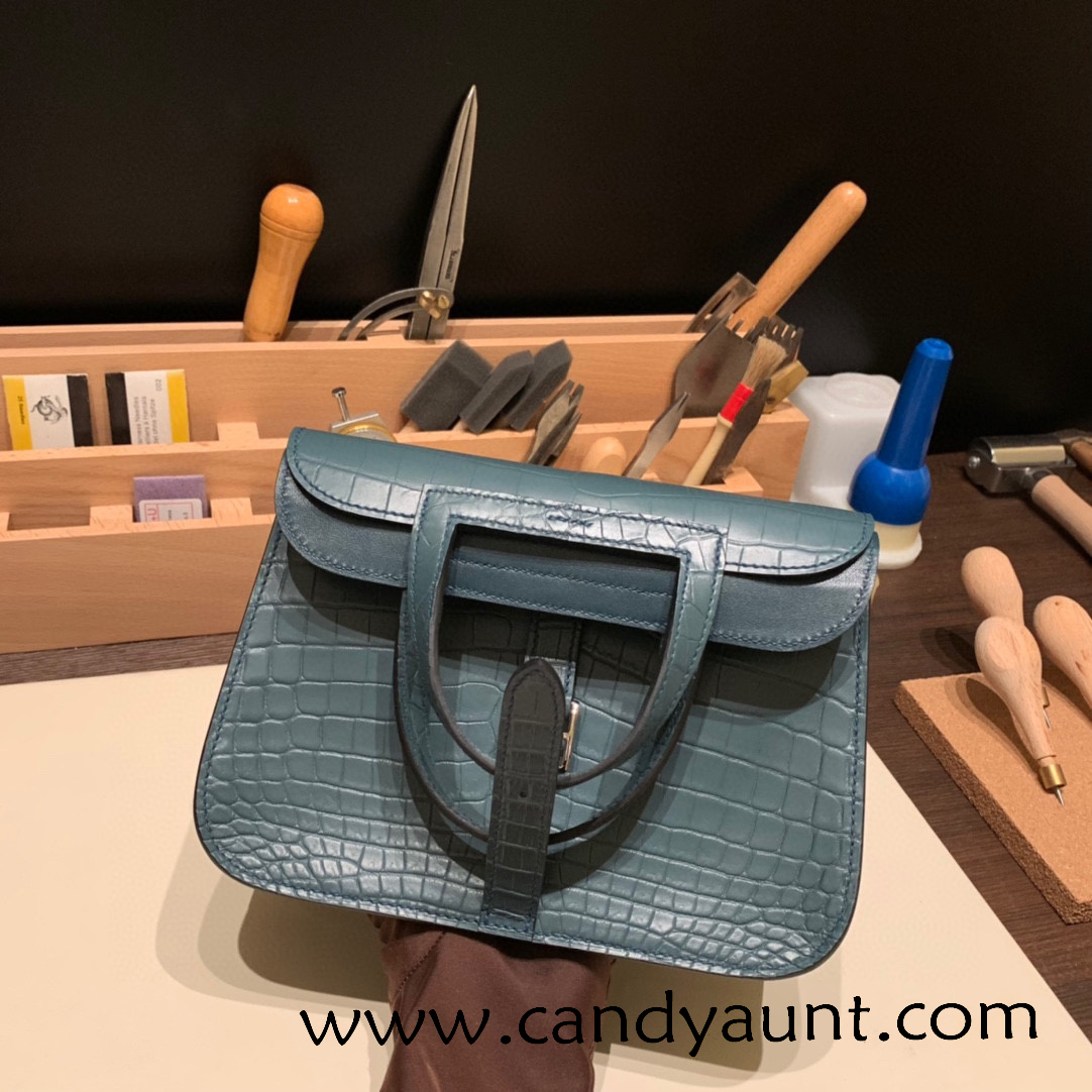 22cm Halzan mini nilo crocodile 7C Cobalt Silver Hardware Full Handmade