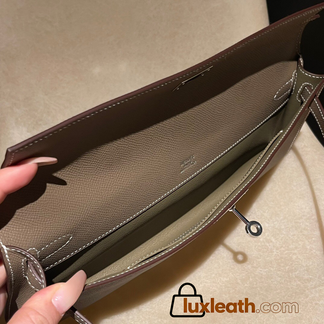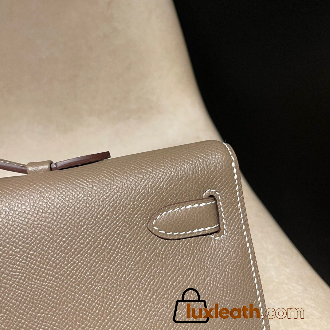 Epsom 18/Étoupe Grey (Étoupe) Full Handmade HERMES Kelly Cut