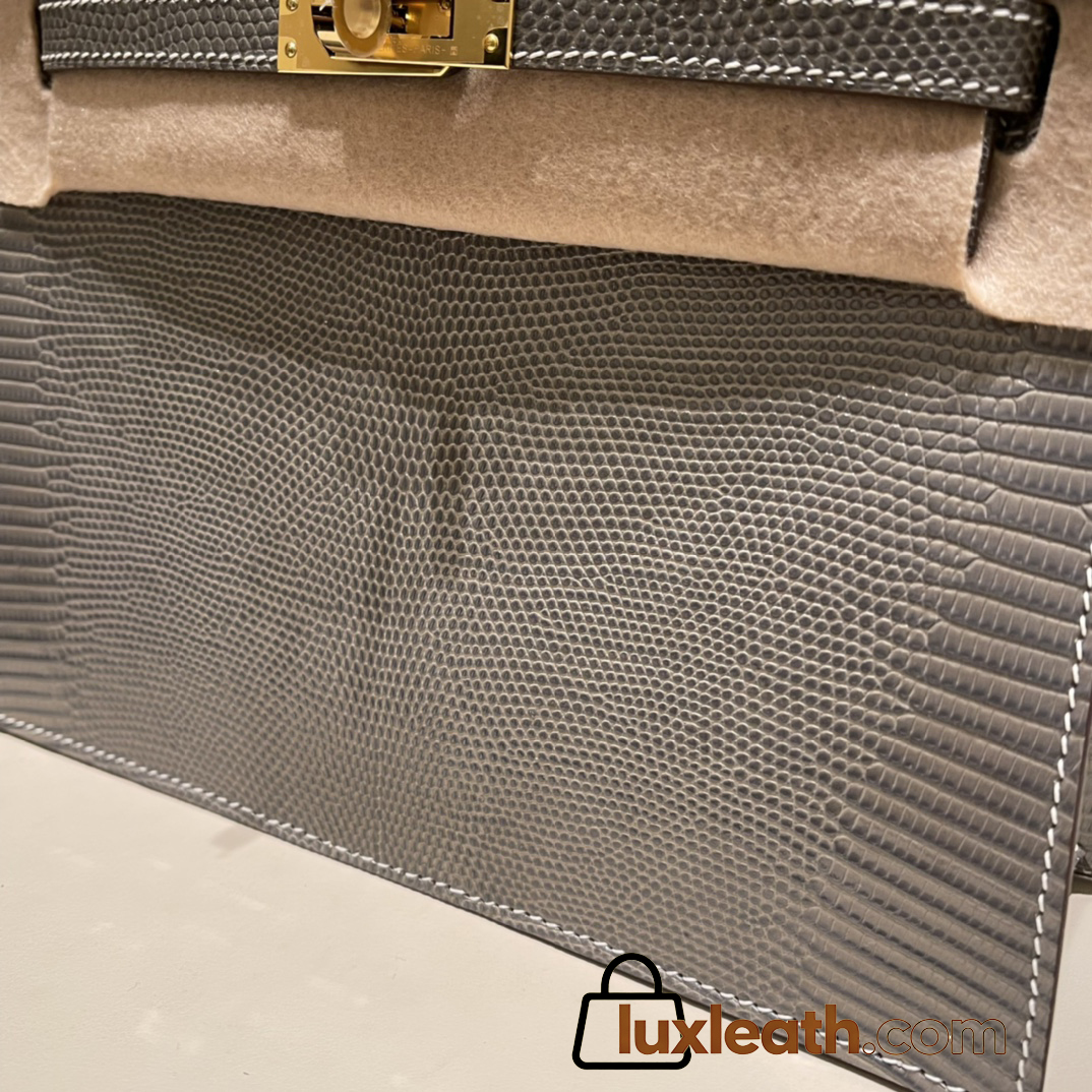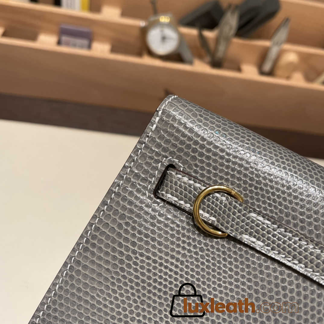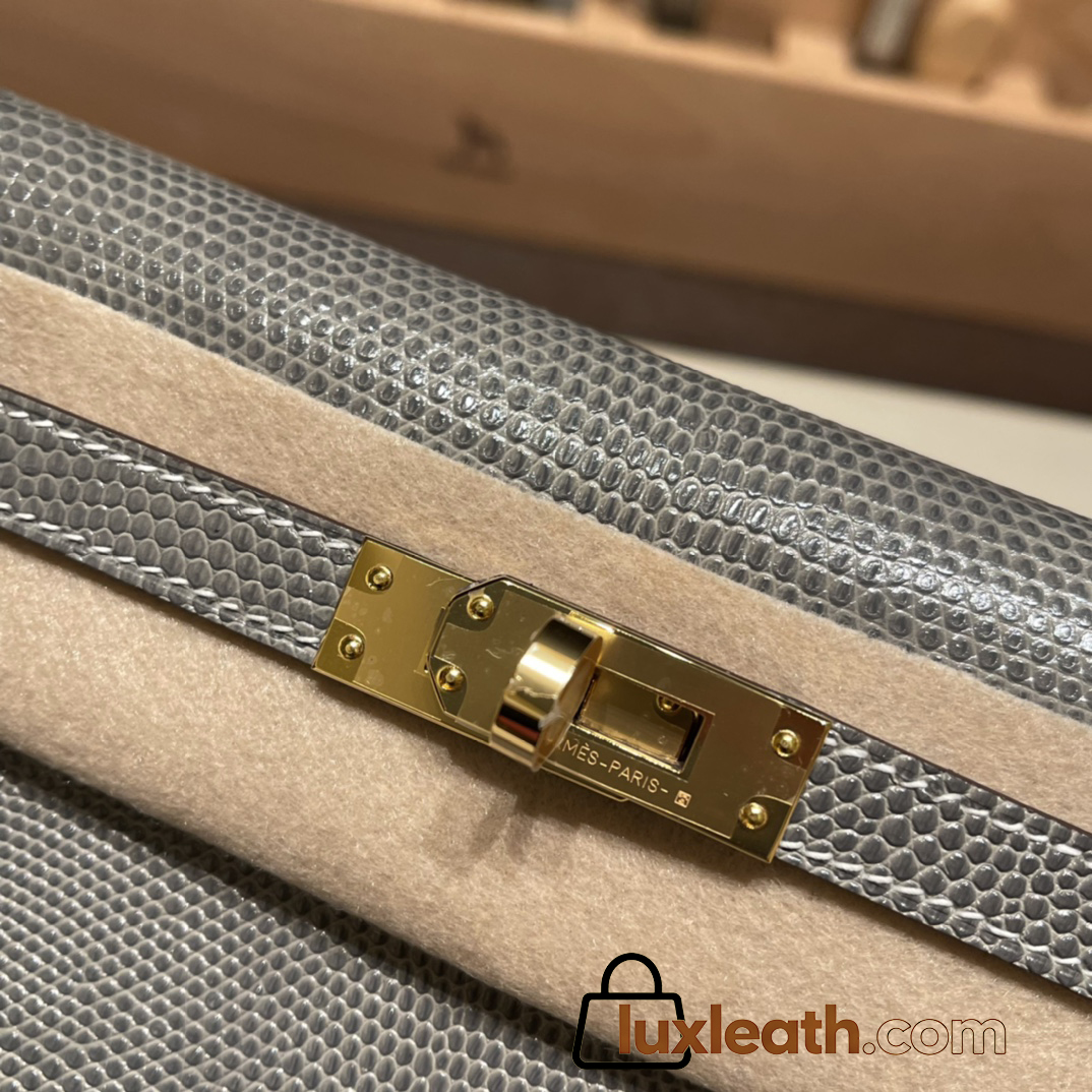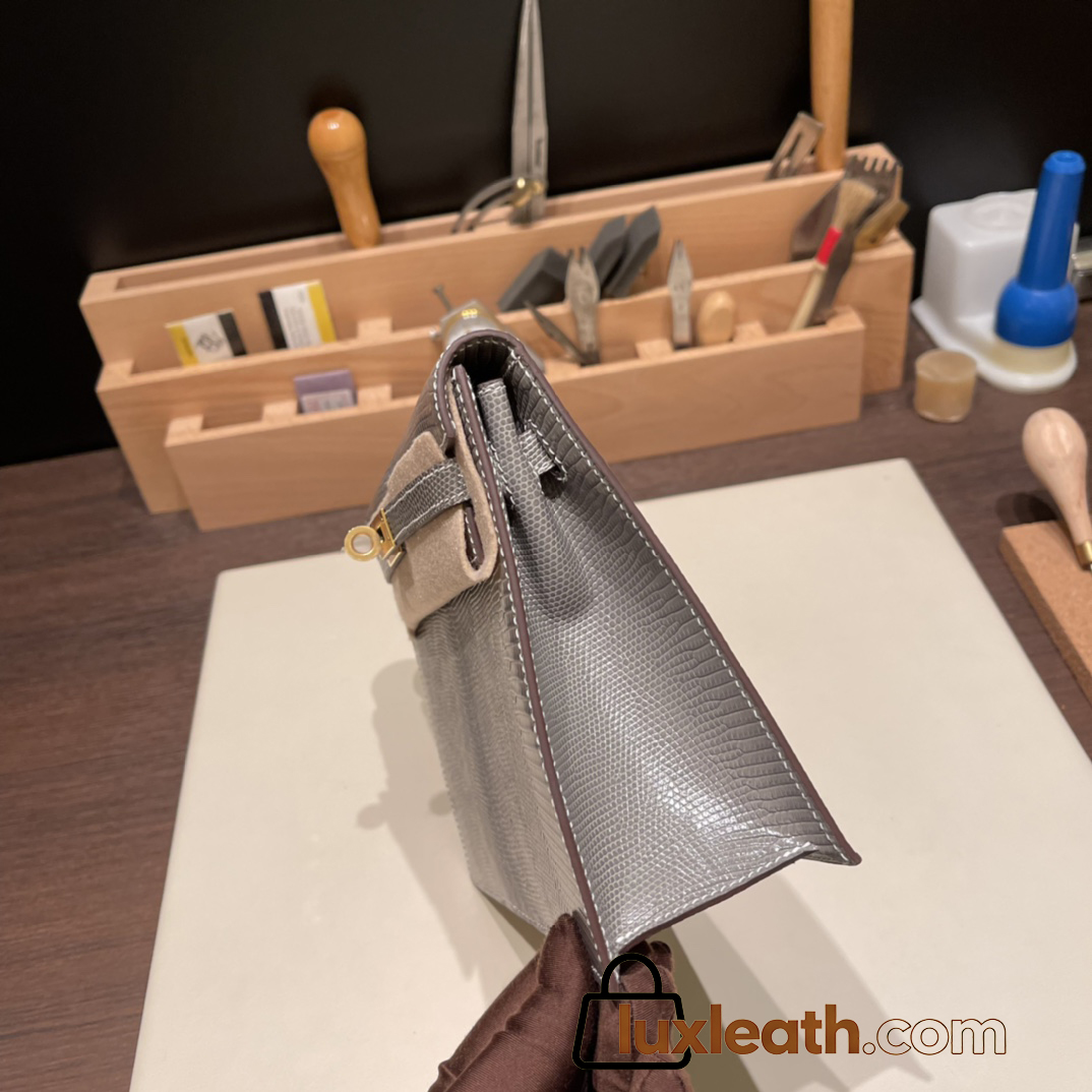 Hermes Kelly danse Lizard M8/Gris Asphalt Gold Hardware