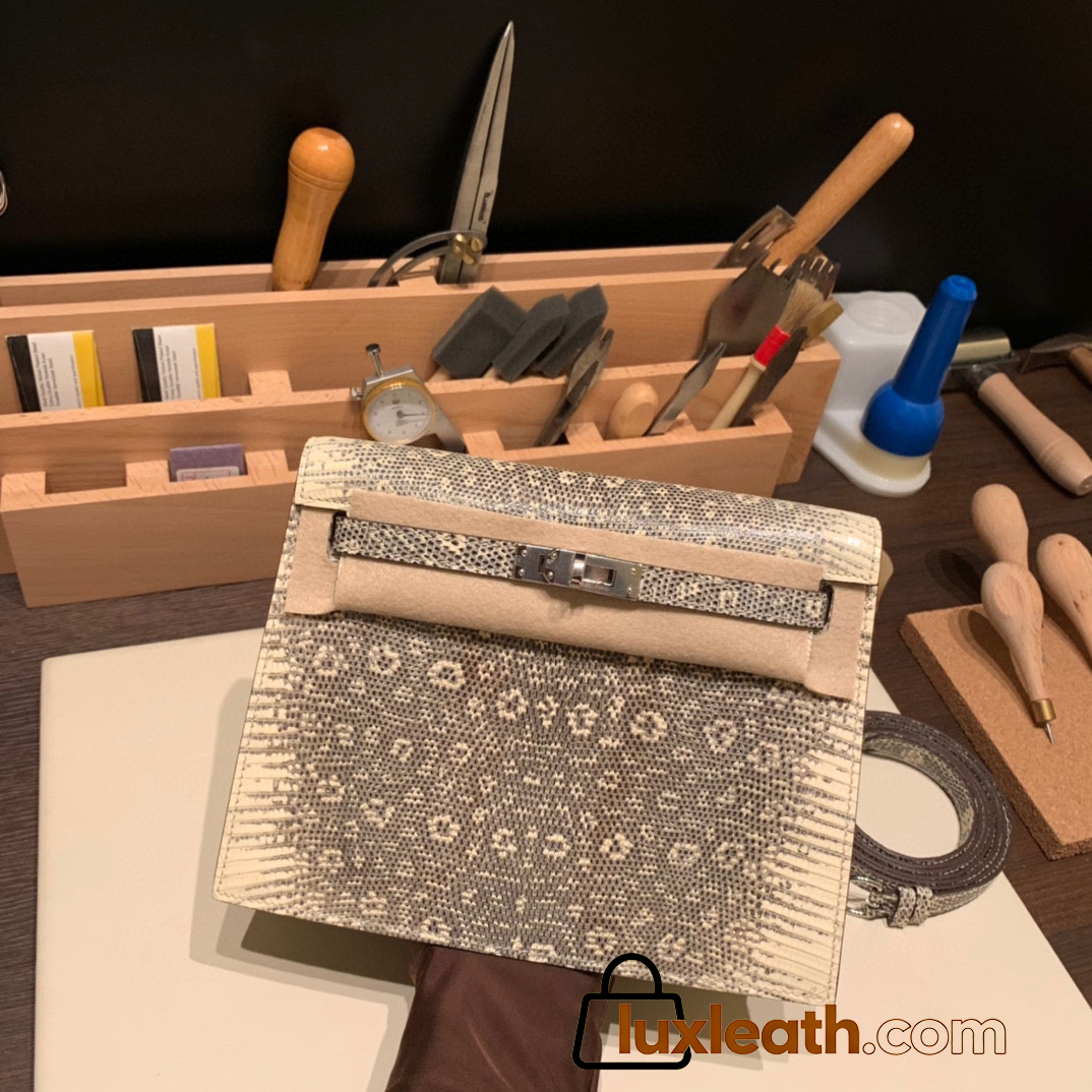 Hermes Kelly danse Lizard M8/Gris Asphalt Silver Hardware