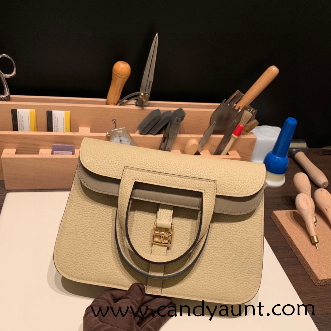 25cm Halzan CLEMENCE TC S2/Trench & 18/ Étoupe Grey Gold Hardware Full Handmade
