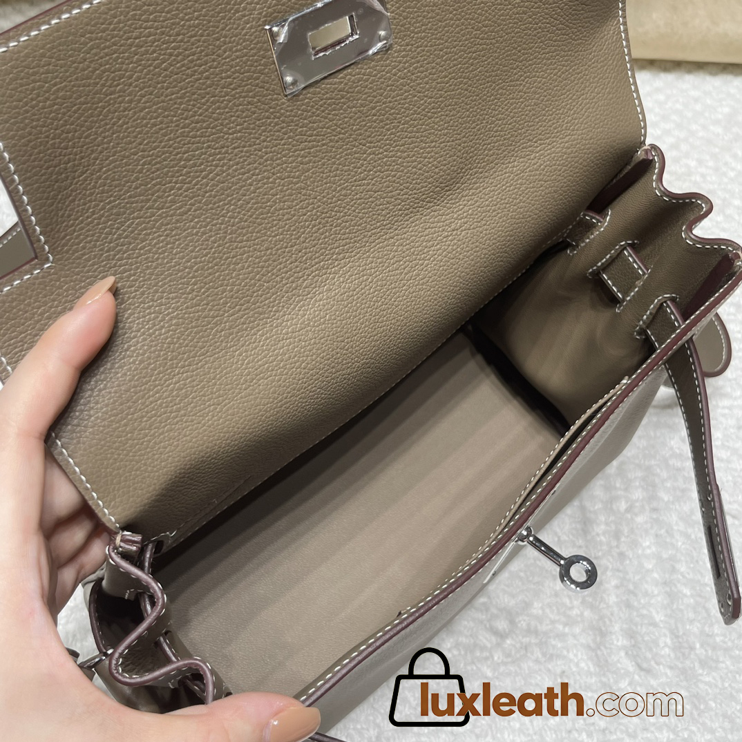 本日ご紹介する「ケリー メッセンジャー ポストマンバッグ」は、エルメスの新進人気モデルで、通常のケリーバッグよりカジュアルな雰囲気を漂わせます。左右の小ポケットと大容量スペースで日常用品を整然と収納可能で、男女兼用のニュートラルデザインは女性が「クール」にスタイリングできます。柔らかな質感の「Evercolor エバーカラー」素材を採用し、人気のエトゥープカラーに銀色金具がハイライトを加え、ビジネスからレジャーまで幅広いシーンで活躍する次世代の定番アイテムです。