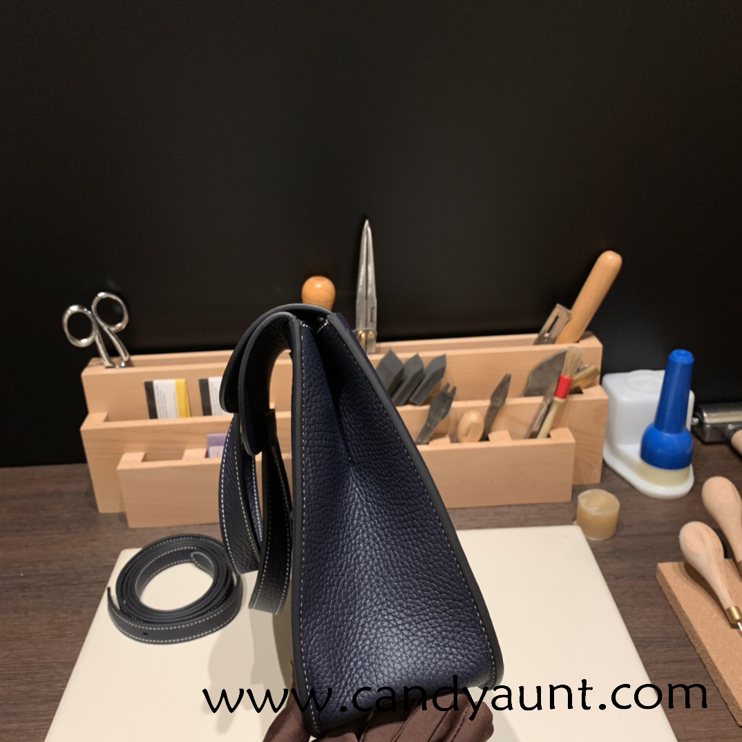 31cm Halzan  Barenia  2Z Blue nuit   Silver Hardware   Full Handmade