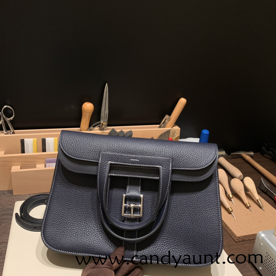31cm Halzan Barenia 2Z Blue nuit Silver Hardware Full Handmade