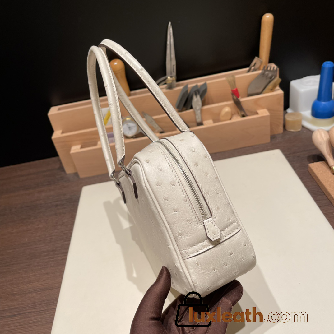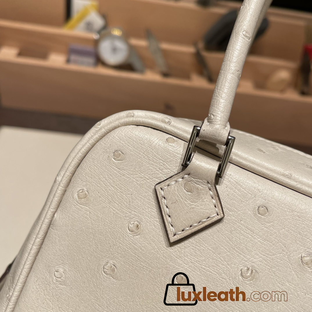 Hermès Plume 21 Ostrich 3C/Parchemin Silver Hardware Plume-004 Fully Hand-Stitched