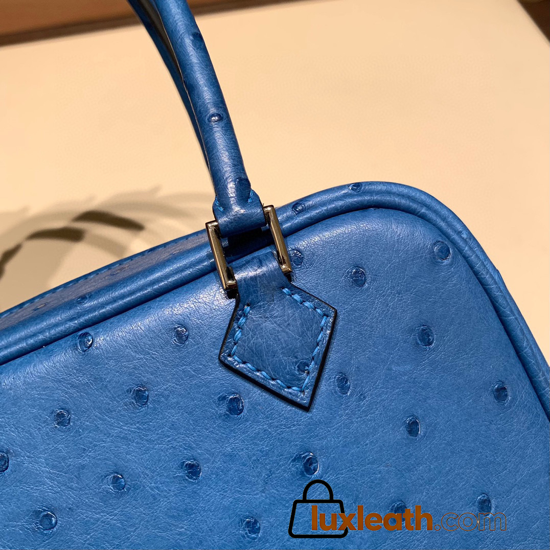 Hermès Plume 21 Ostrich T7/Blue Hydra Silver Hardware Plume-010 Fully Hand-Stitched