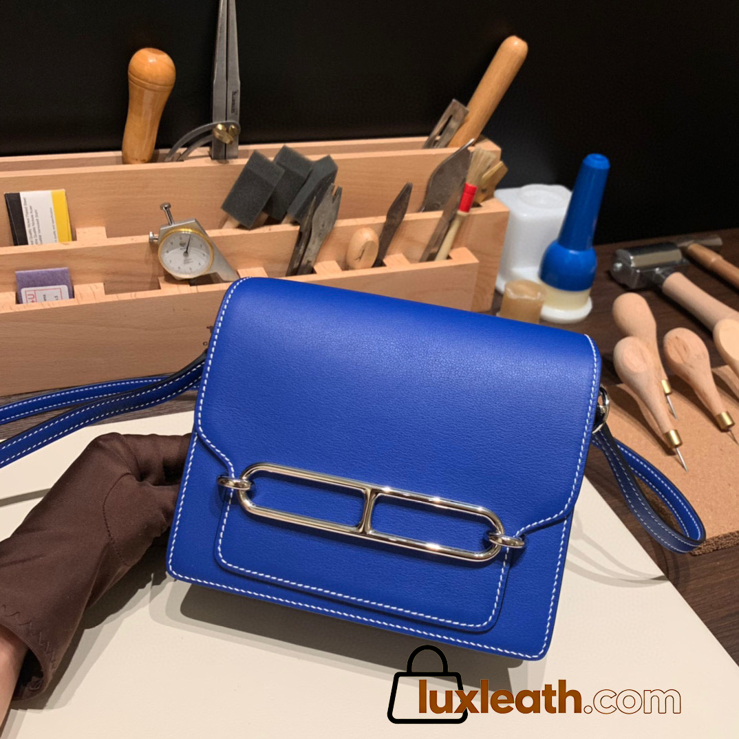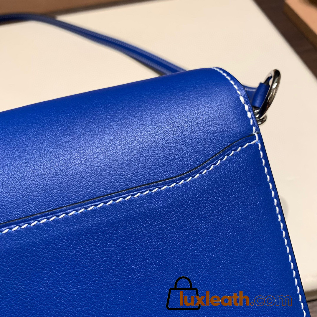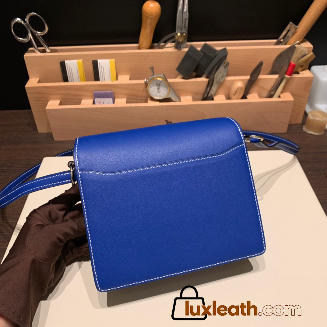 Hermès Roulis 19cm Swift 7T/Blue Electric Silver Hardware Roulis-023 Fully Hand-Stitched