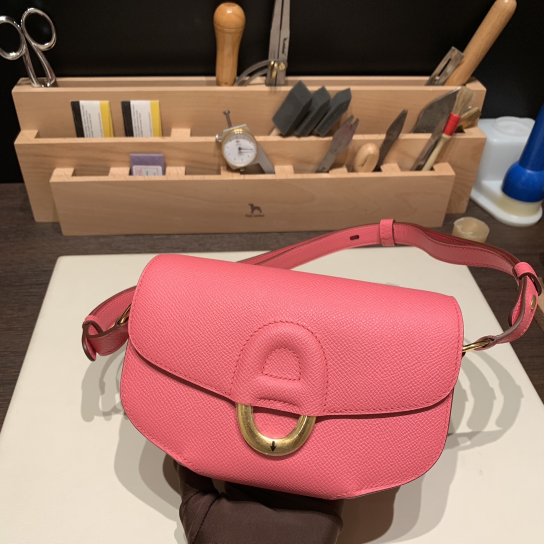 Hermès Cherche-Midi 18 Veau Epsom 8W/Rose Azalee Silver Hardware Cherche-049 Fully Hand-Stitched