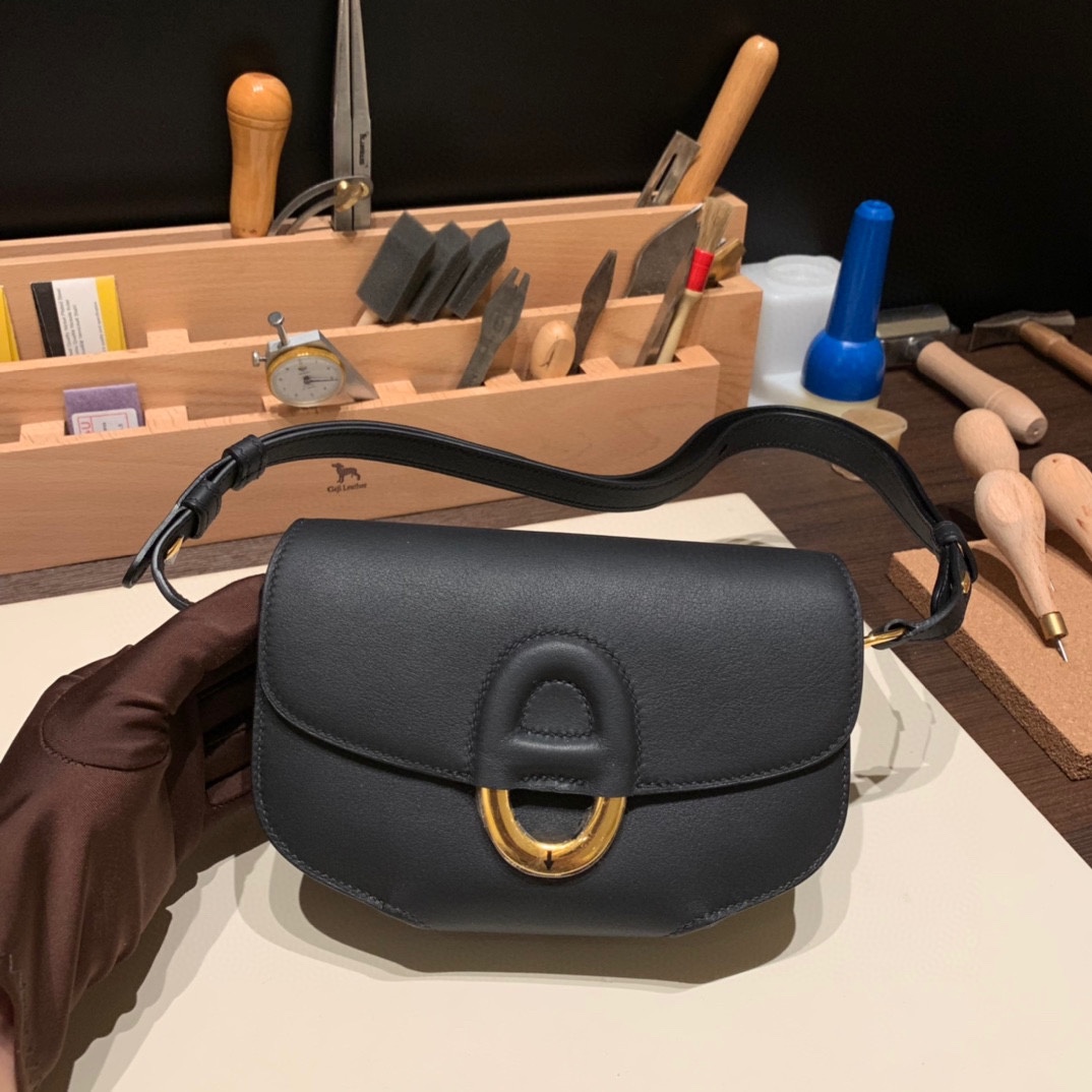 Hermès Cherche-Midi 18 Veau Epsom 89/Black (Noir) Silver Hardware Cherche-050 Fully Hand-Stitched