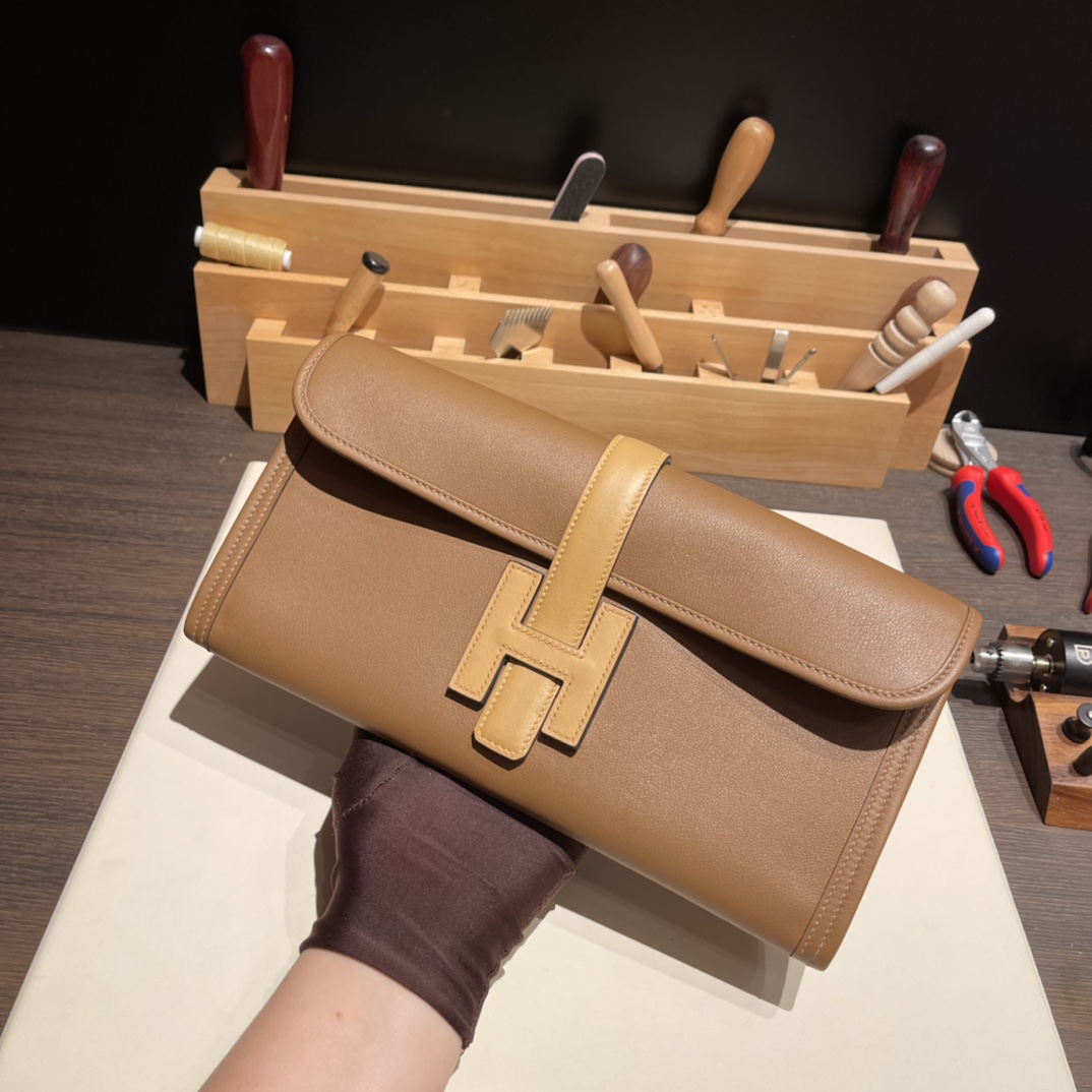Hermès Jige Elan 29 Clutch Swift 3G/Alezan X Biscuit JigeElan-087 Fully Hand-Stitched