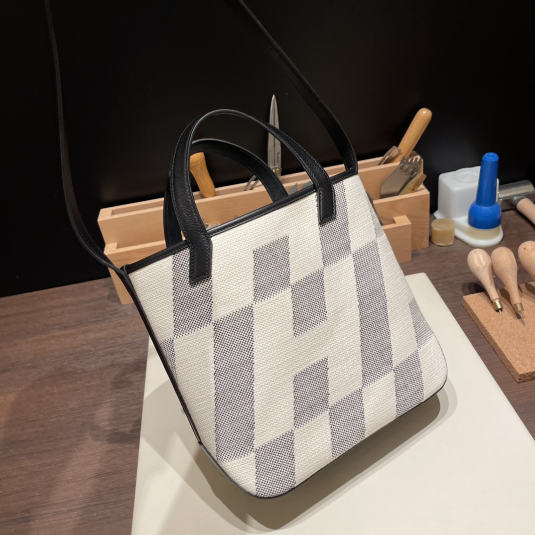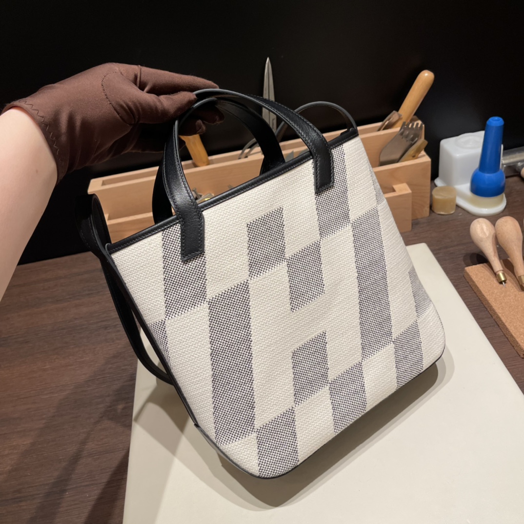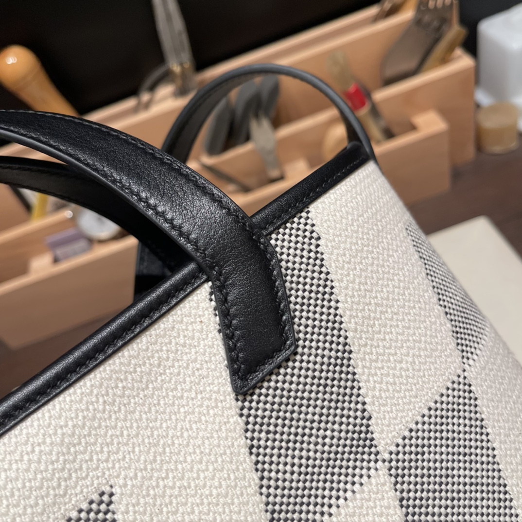 Hermès Cabas H En Biais 27cm Twill Ash/Swift 89/Black (Noir) Biais27-089 Fully Hand-Stitched