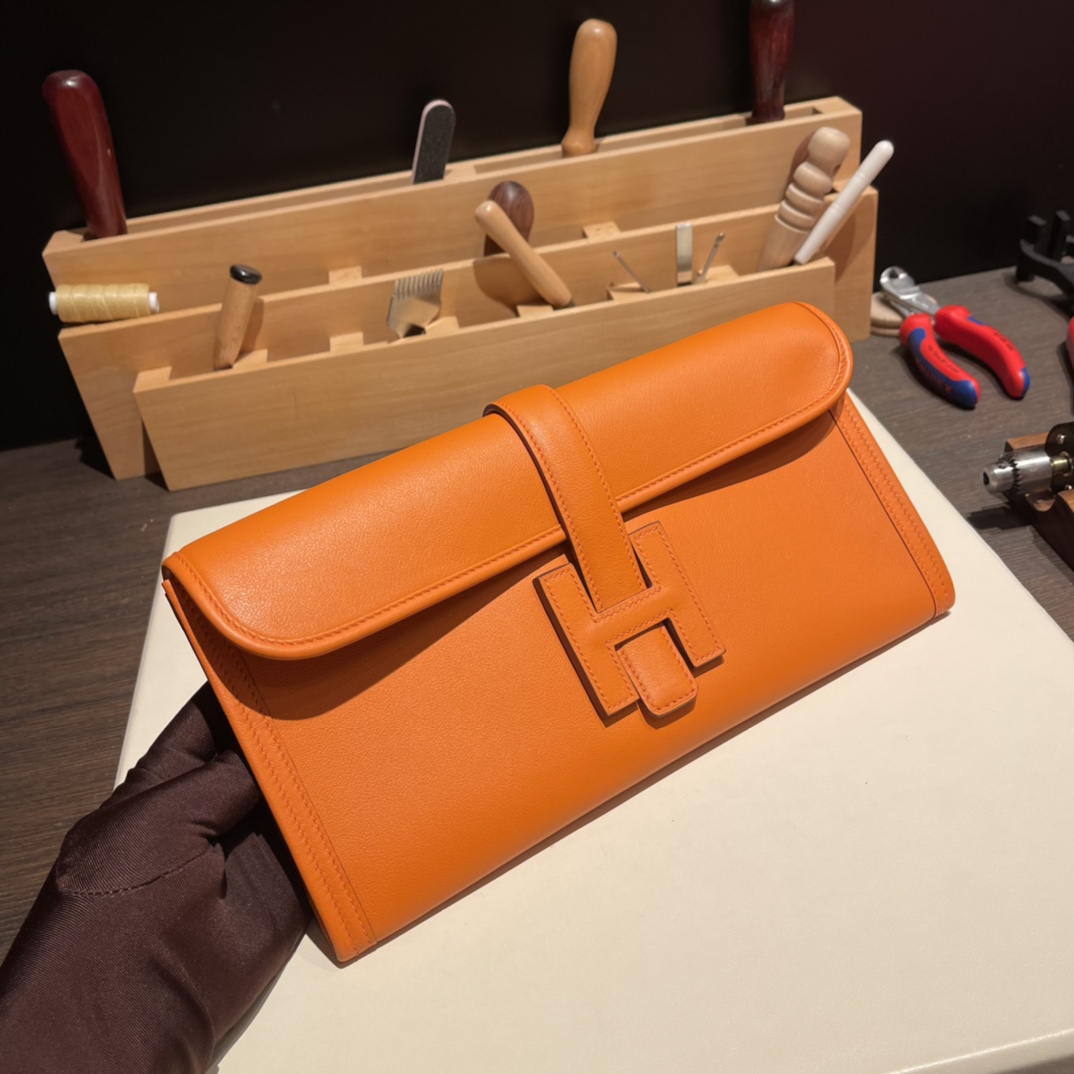 Hermès Jige Elan 29 Clutch Swift 9J/Feu JigeElan-086 Fully Hand-Stitched