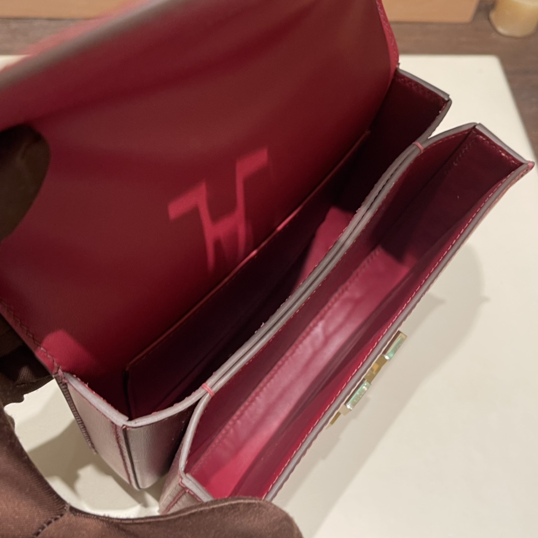 Hermès Mosaique 17cm Box Calf B5/Ruby Gold Hardware Mosaique-063 Fully Hand-Stitched