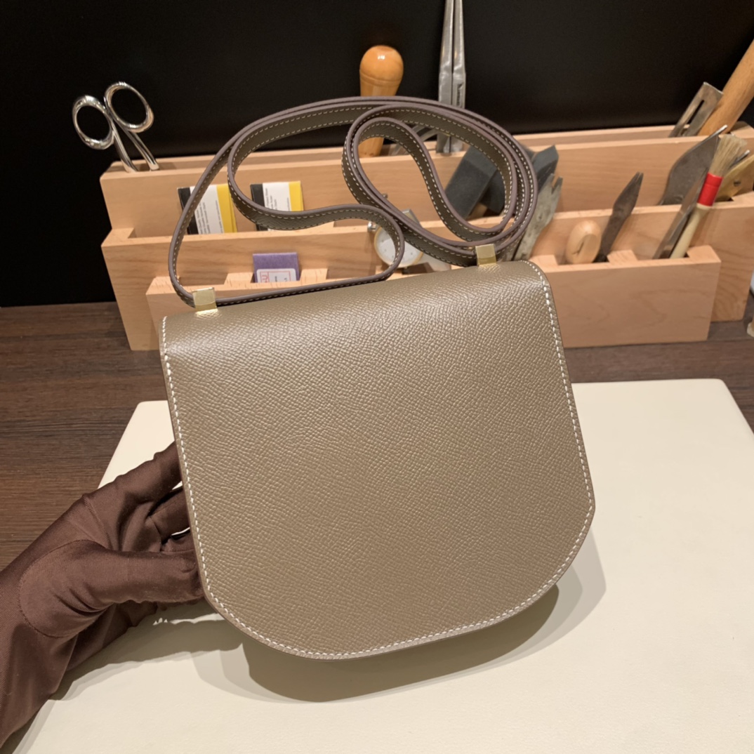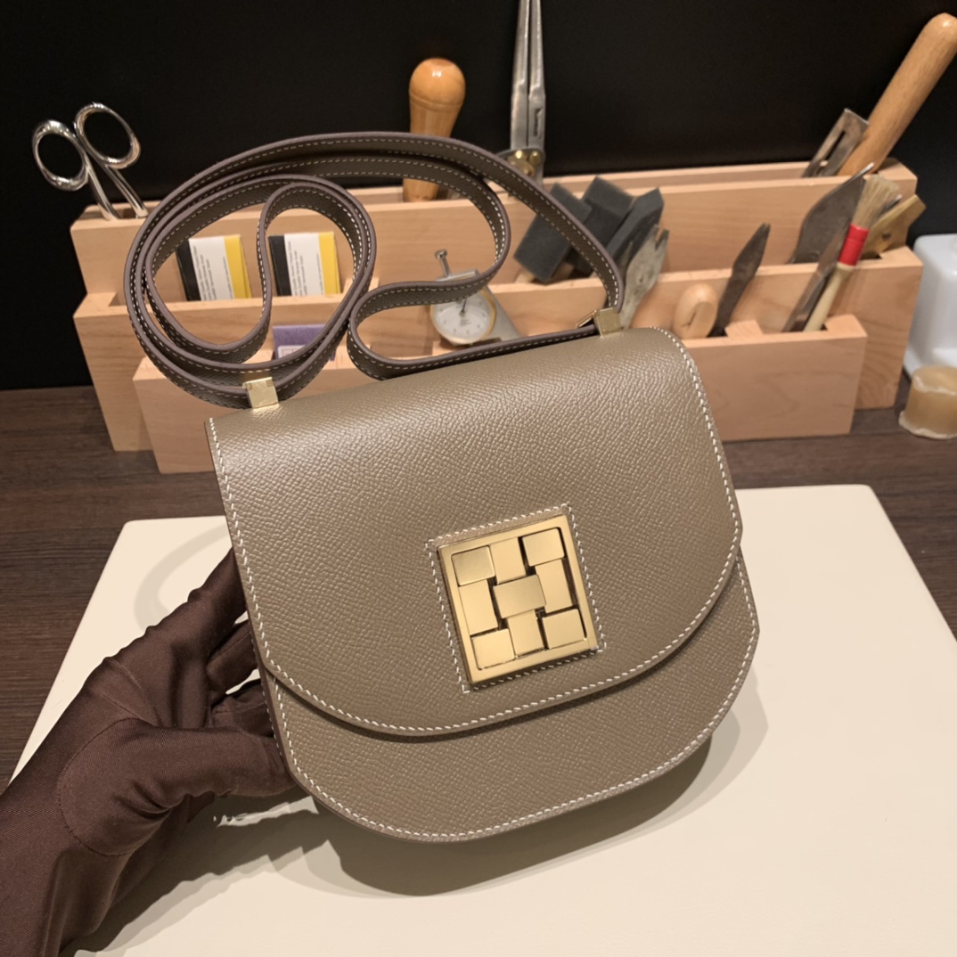 Hermès Mosaique 17cm Veau Epsom 18/Étoupe Grey (Étoupe) Gold Hardware Mosaique-070 Fully Hand-Stitched
