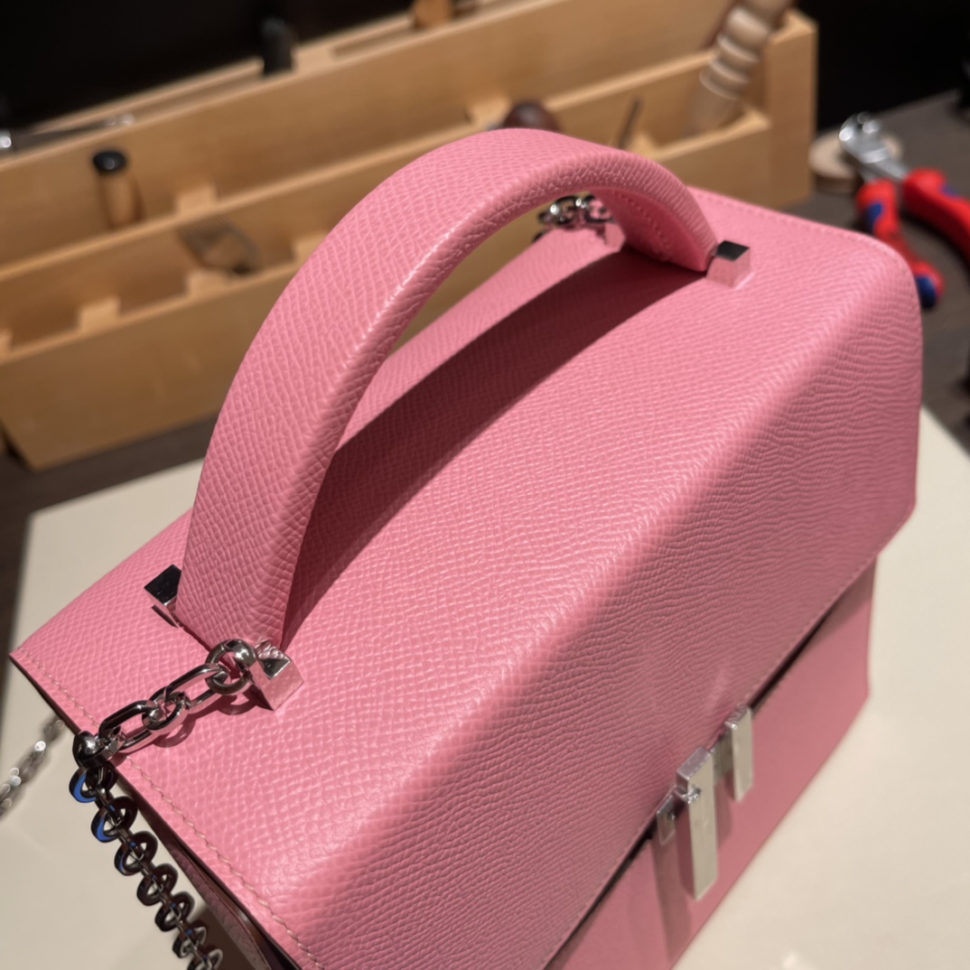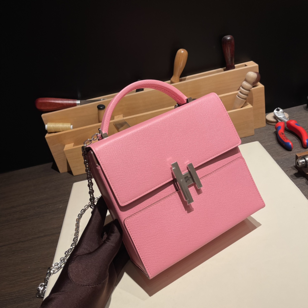 Hermès Stock~Cinhetic 18cm Chevre Mysore 1Q/Rose Confetti Silver Hardware Cinhetic-072 Fully Hand-Stitched