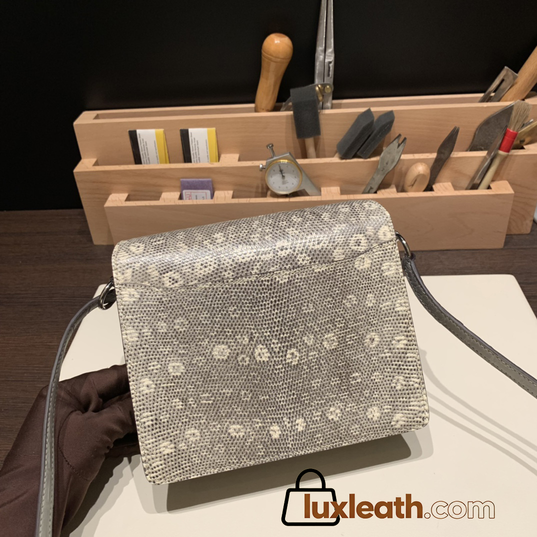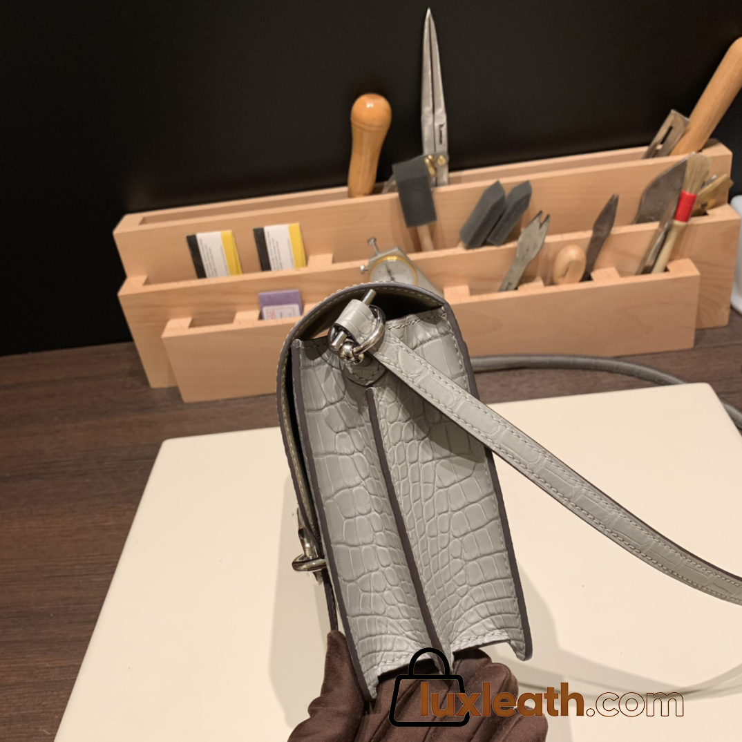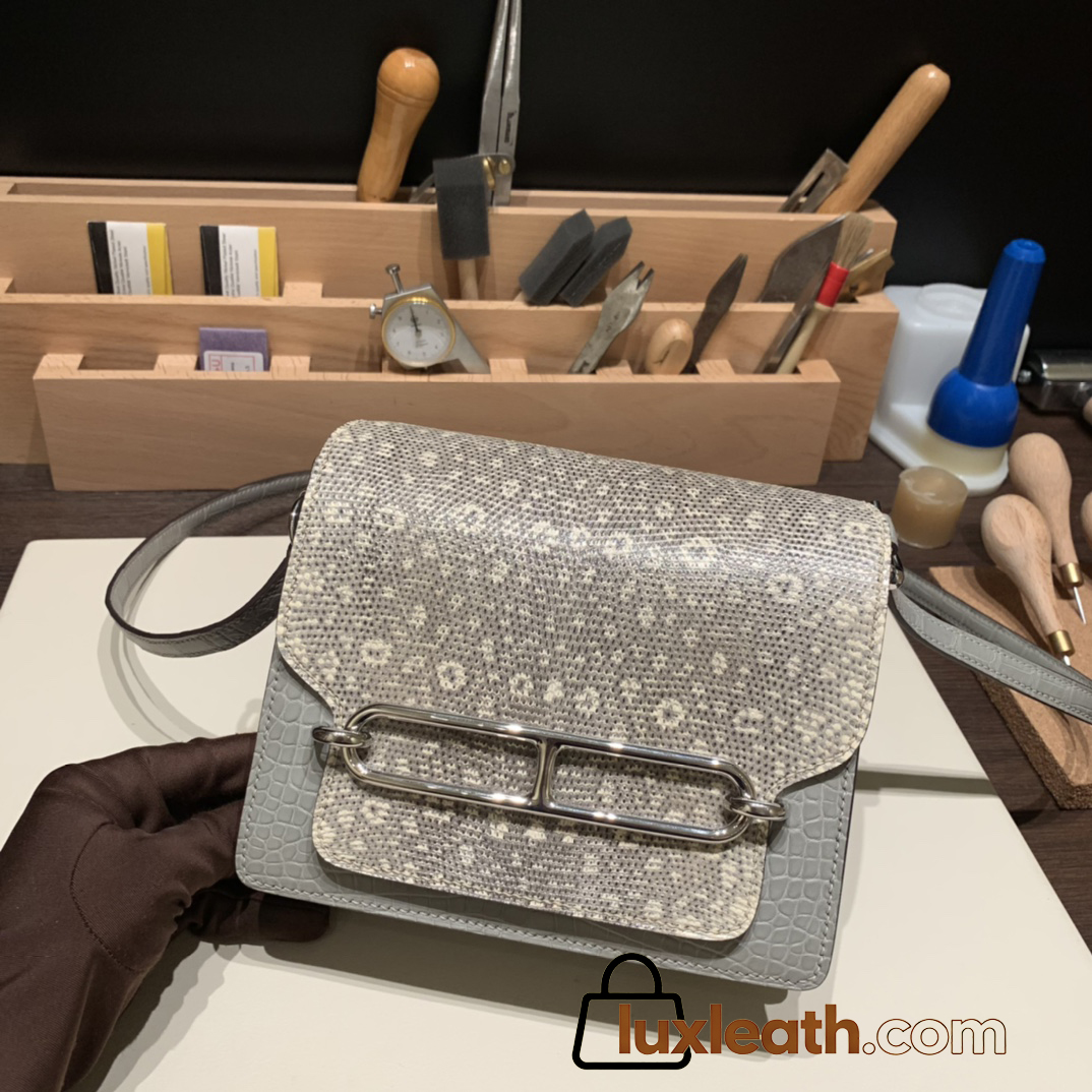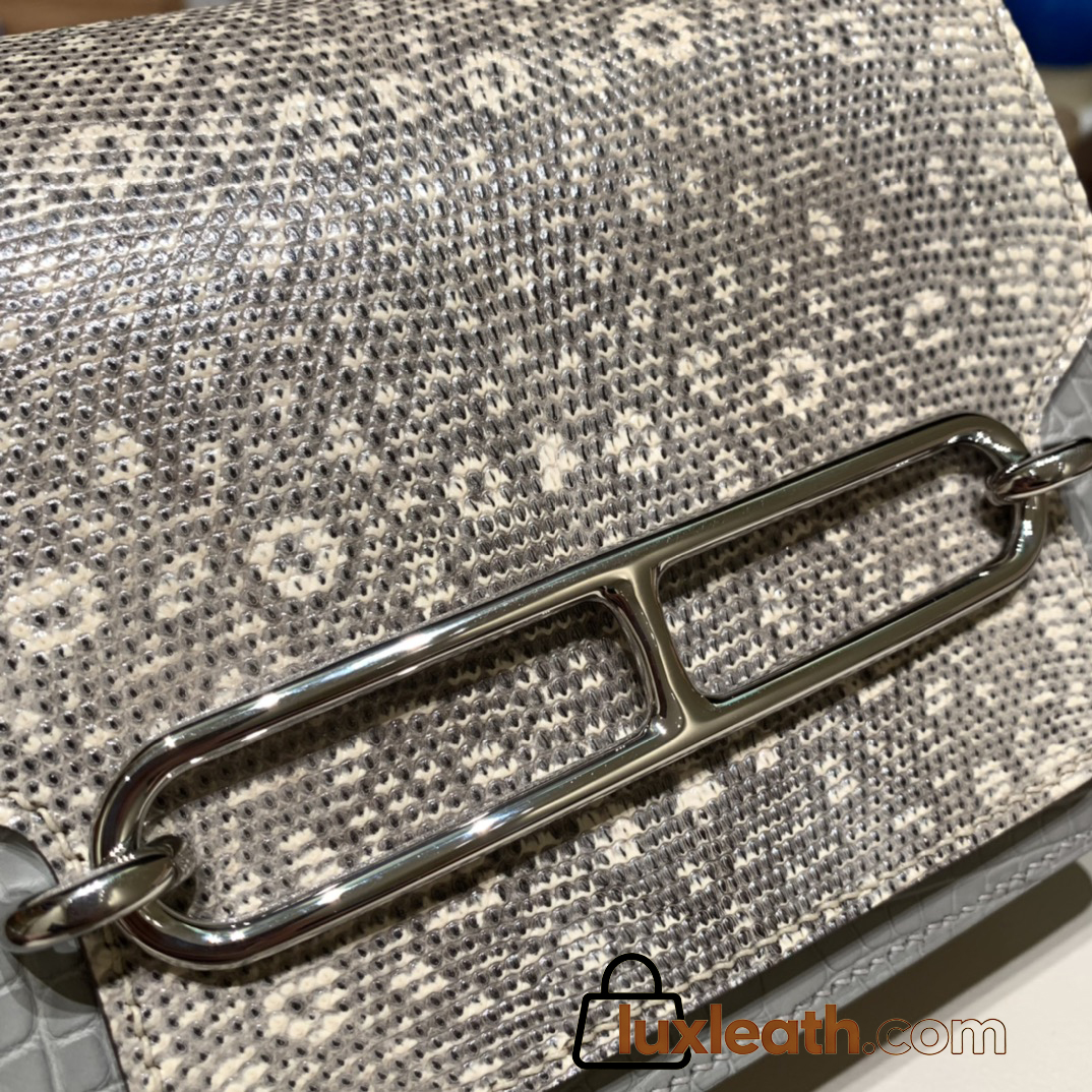 Hermès Roulis 19cm Crocodile Alligator & Natural Lizard 80/Pearl Grey X Ombre Silver Hardware Roulis-025 Fully Hand-Stitched