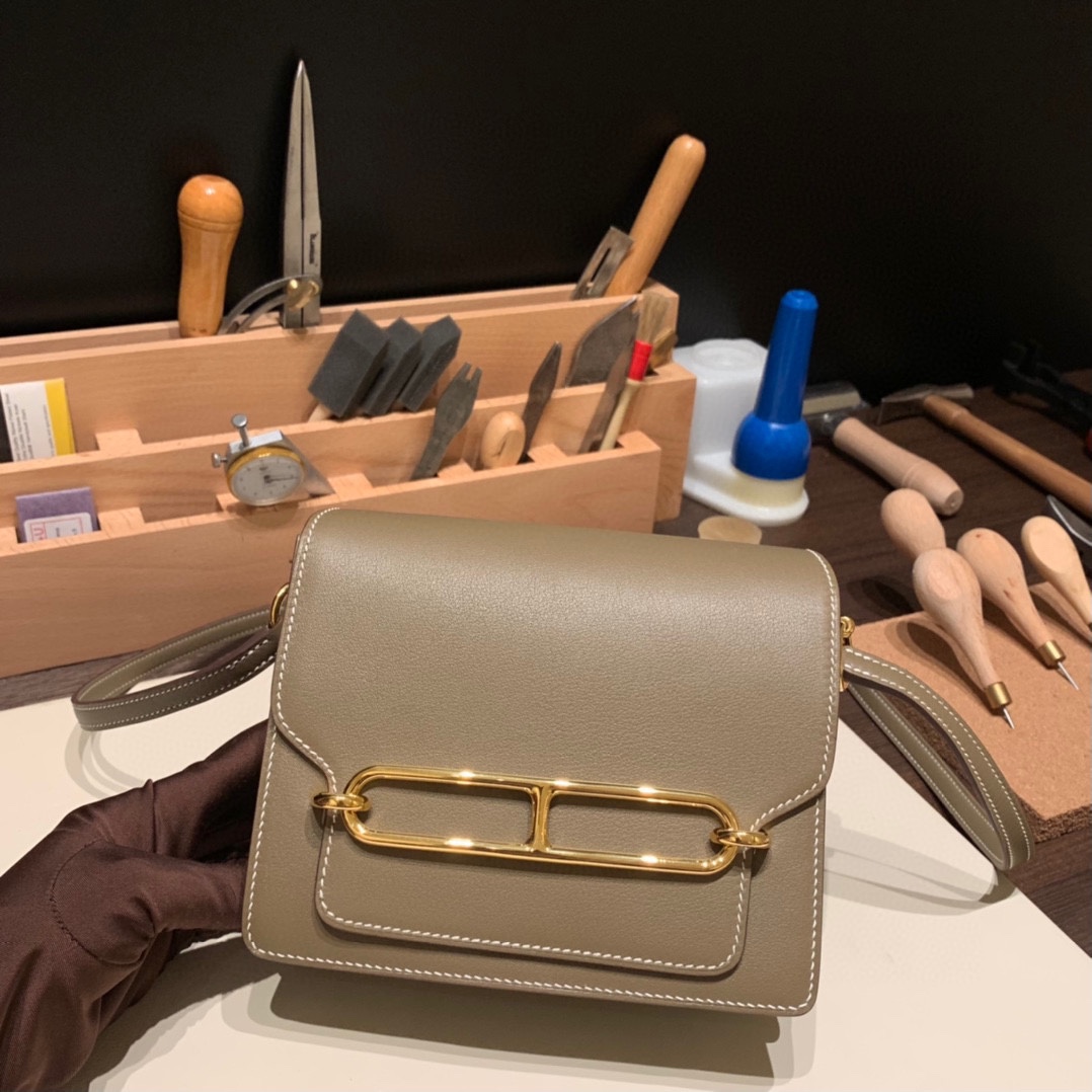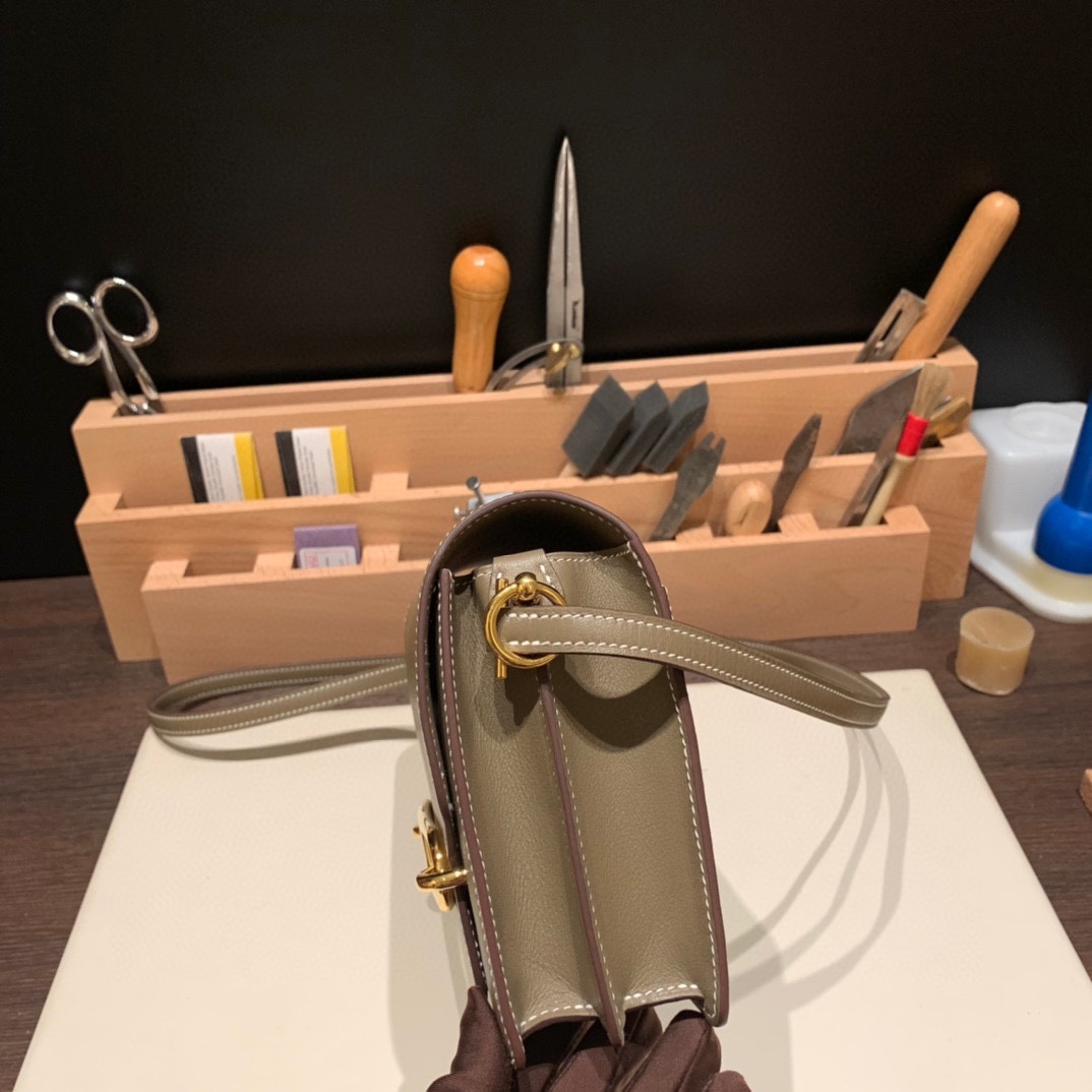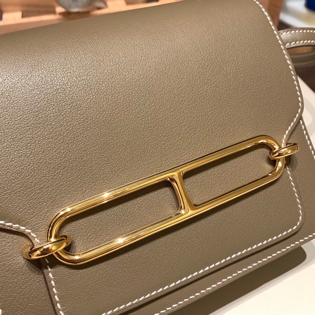 Hermès Roulis 19cm Evercolor 18/Étoupe Grey (Étoupe) Gold Hardware Roulis-037 Fully Hand-Stitched