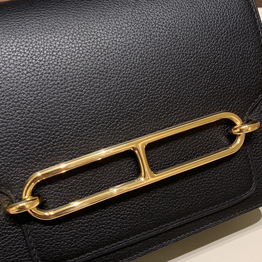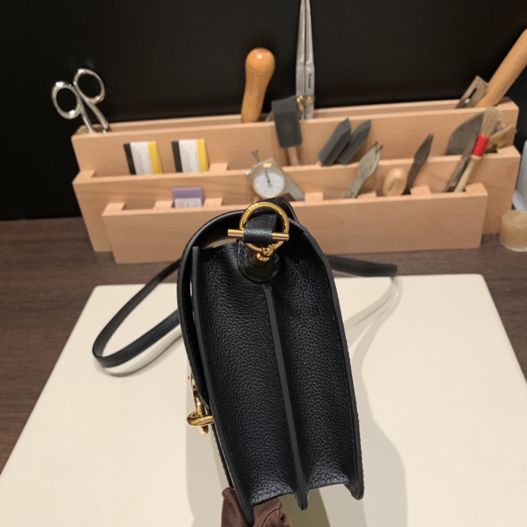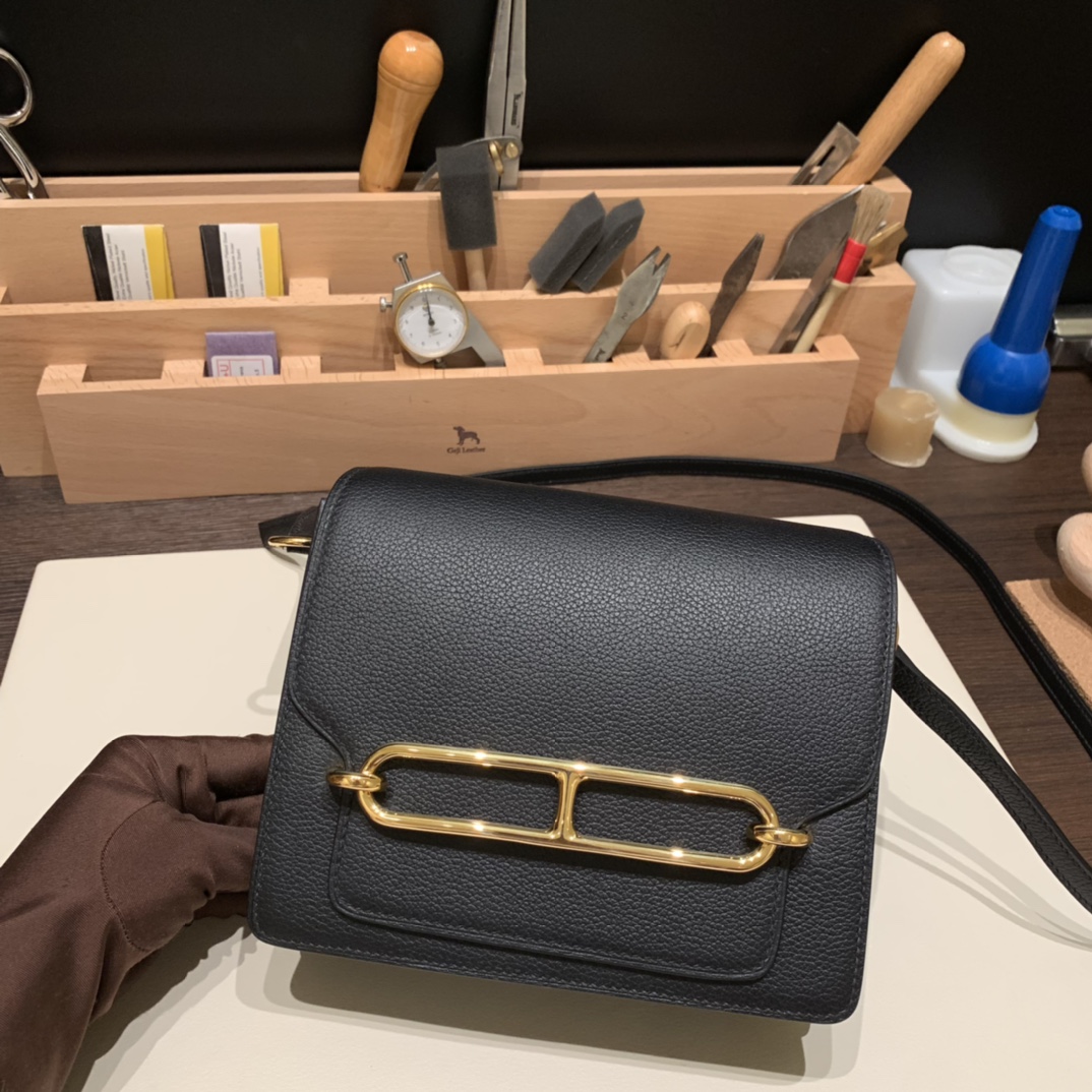 Hermès Roulis 19cm Evercolor 89/Black (Noir) Gold Hardware Roulis-039 Fully Hand-Stitched
