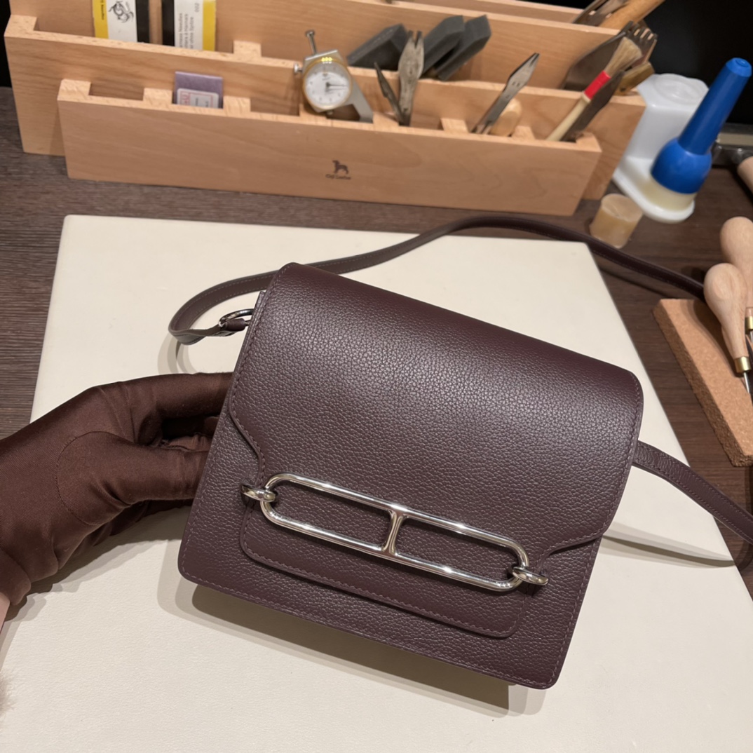 Hermès Roulis 19cm Evercolor 0G/Rouge Sellier X Framboise Silver Hardware Roulis-040 Fully Hand-Stitched