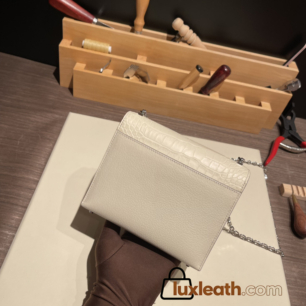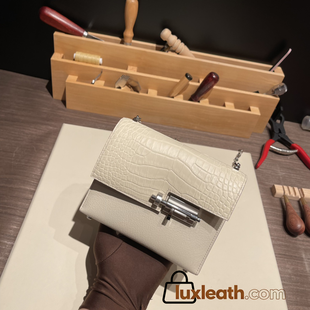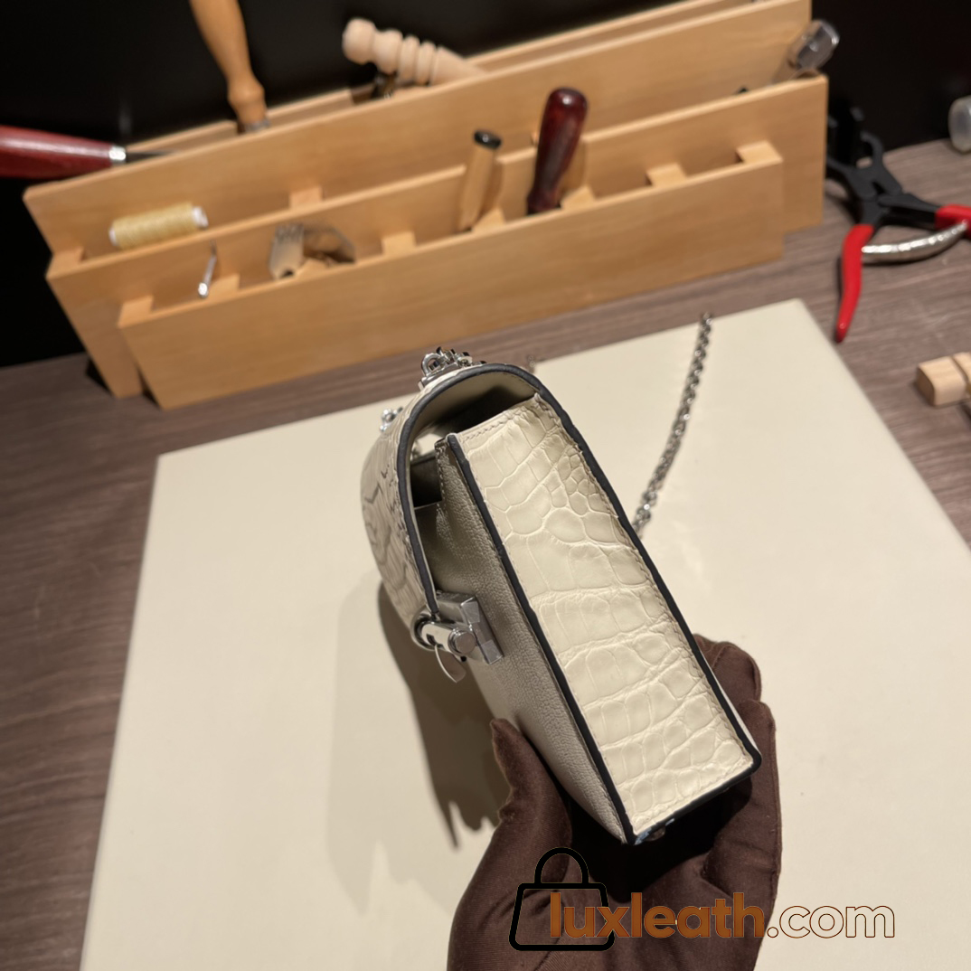 Hermès Verrou Mini 17cm Crocodile 8L/Beton (Béton) Silver Hardware Verrou-016 Fully Hand-Stitched