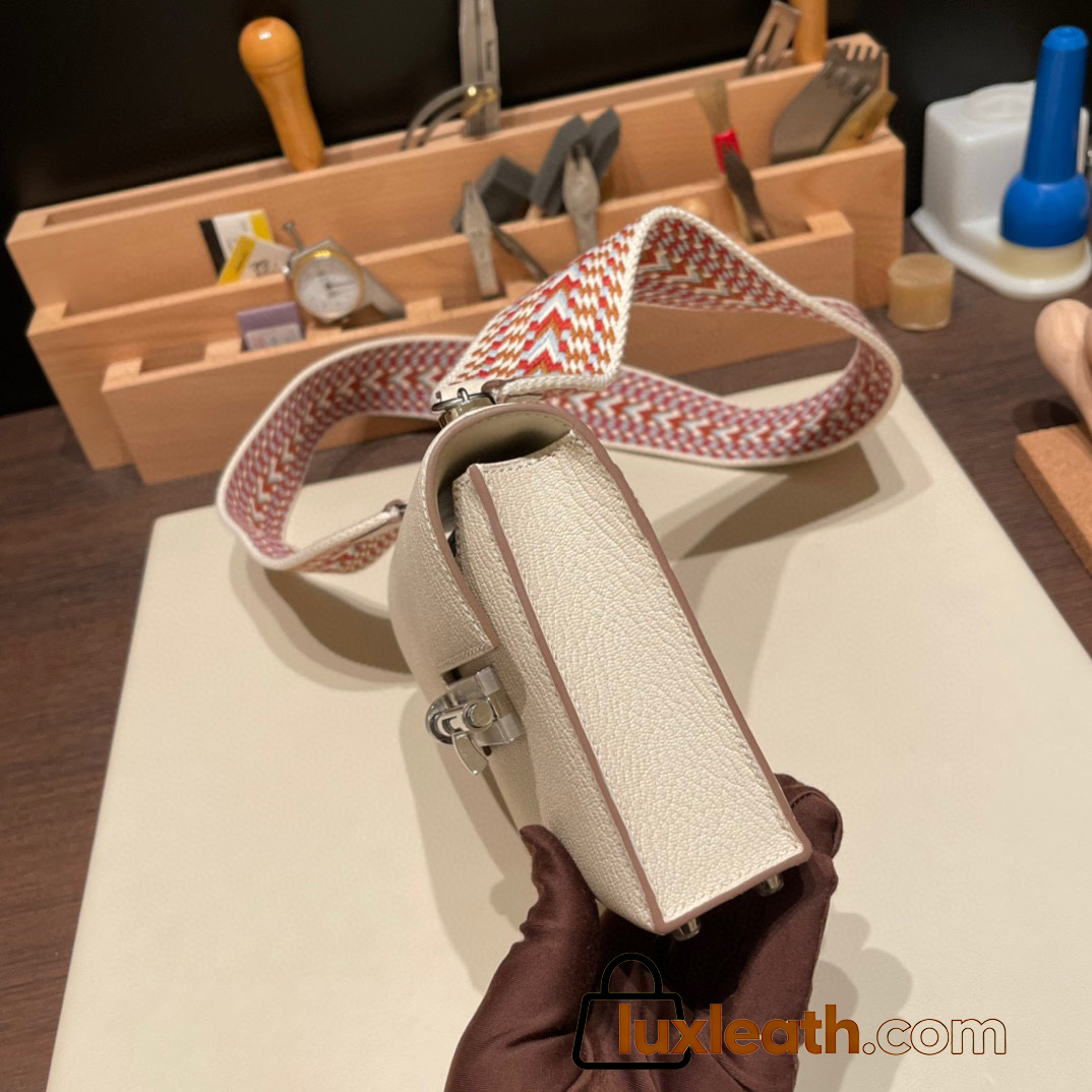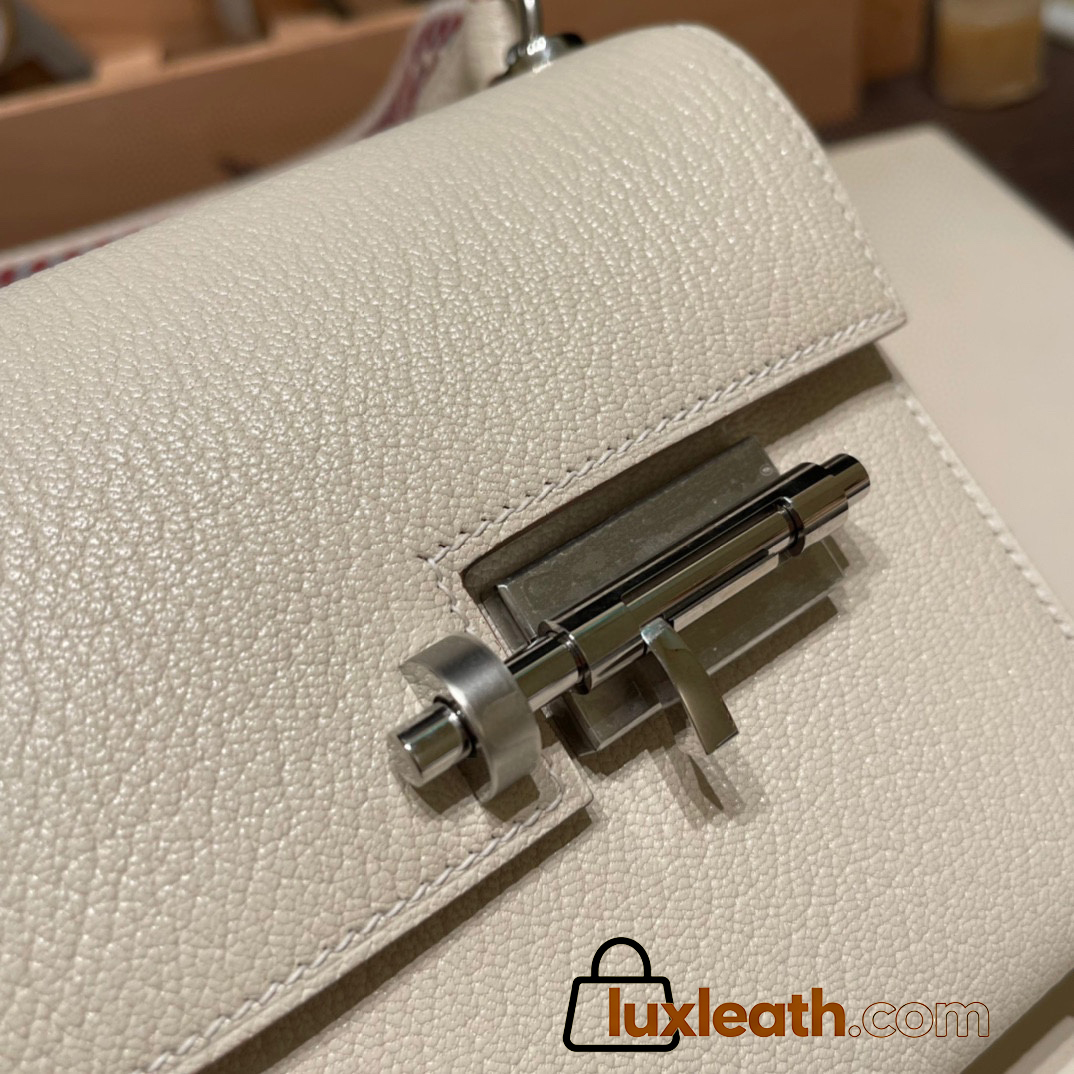 Hermès Verrou Mini 17cm Chevre Mysore 10/Craie Silver Hardware Verrou-019 Fully Hand-Stitched