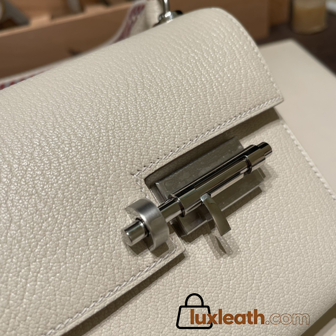 Hermès Verrou Mini 17cm Chevre Mysore 10/Craie Silver Hardware Verrou-020 Fully Hand-Stitched