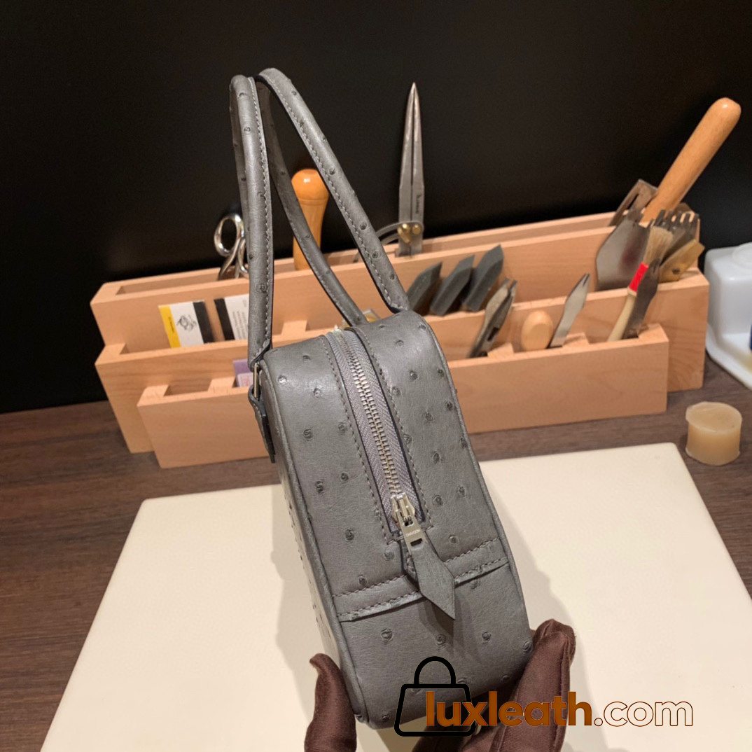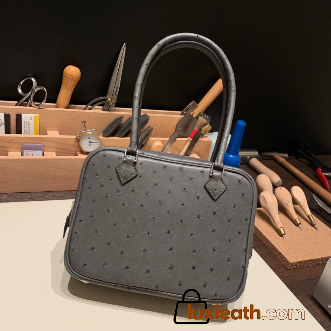 Hermès Plume 21 Ostrich 8F/Etain Silver Hardware Plume-009 Fully Hand-Stitched