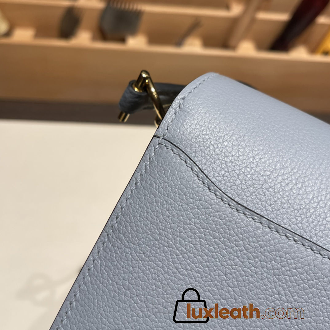 Hermès Roulis 19cm Evercolor J7/Blue Lin Gold Hardware Roulis-027 Fully Hand-Stitched