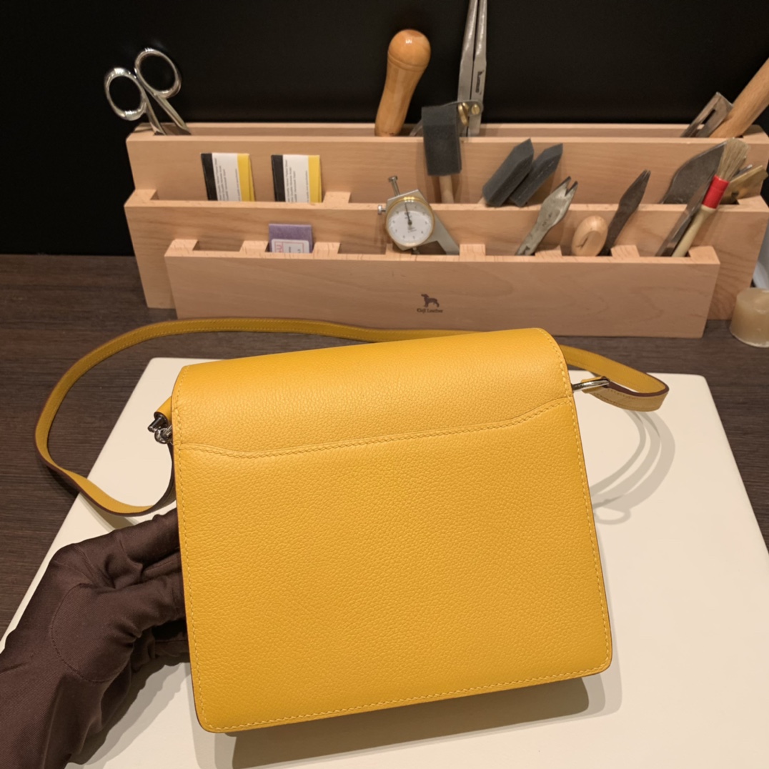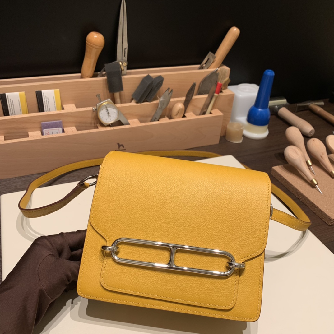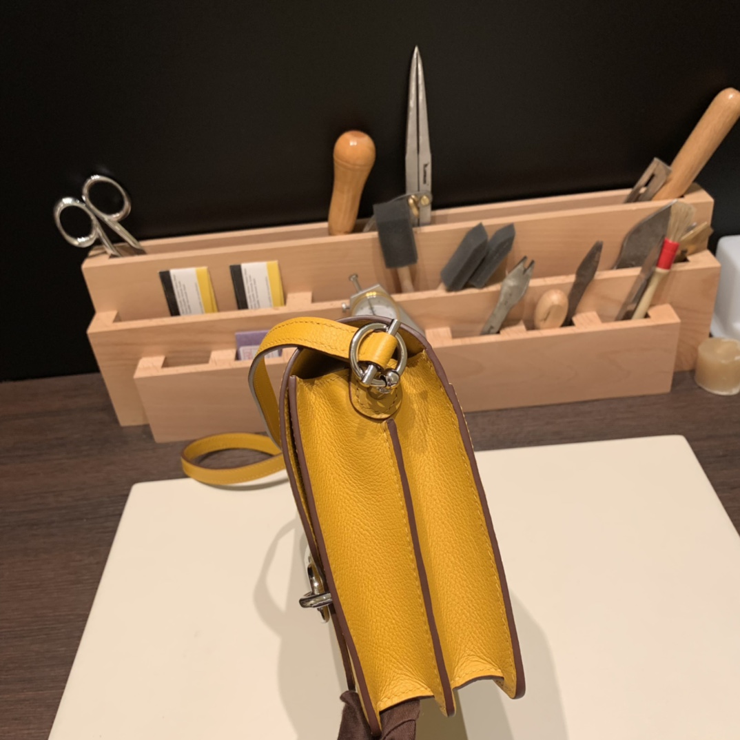 Hermès Roulis 19cm Evercolor 9D/Jaune Ambre Silver Hardware Roulis-036 Fully Hand-Stitched