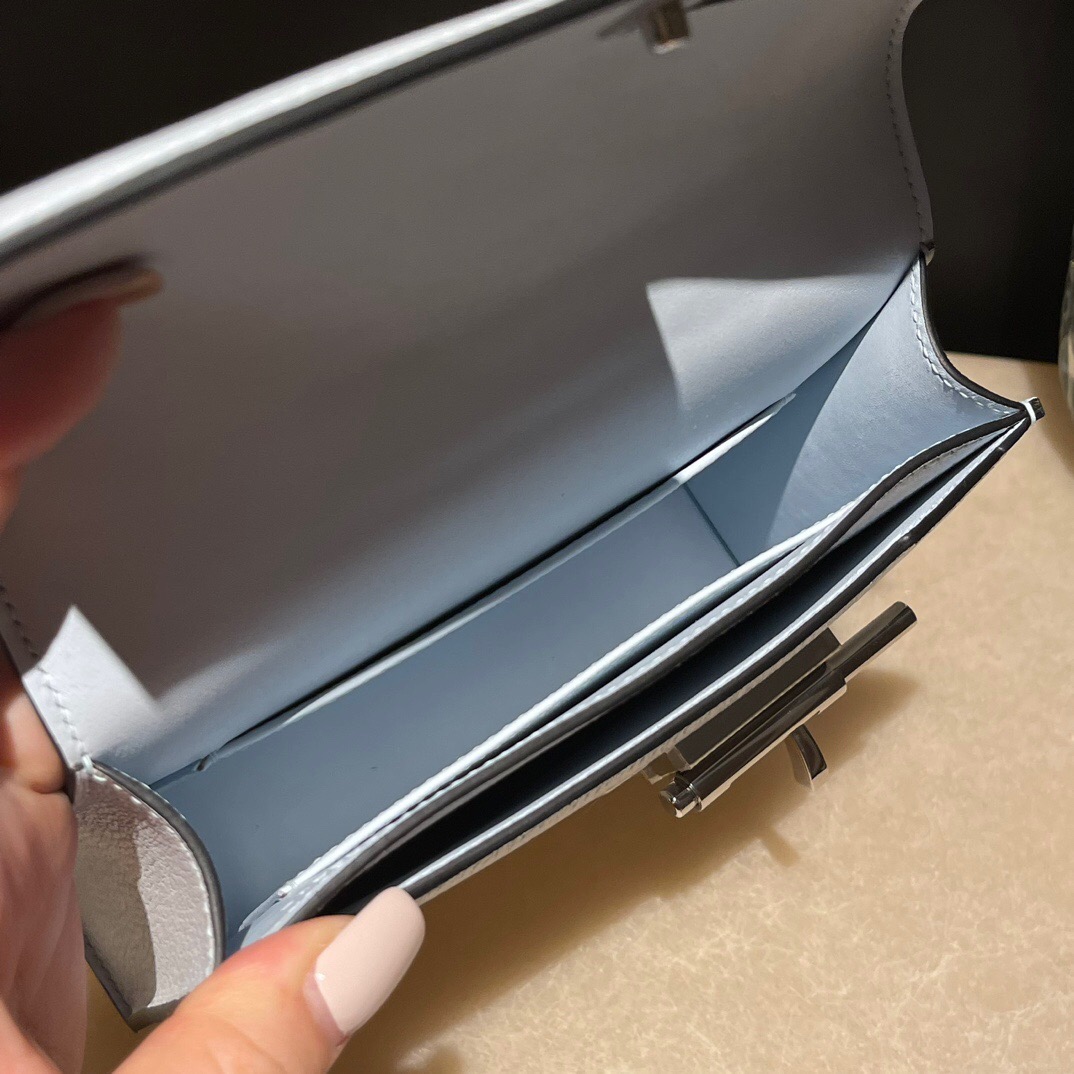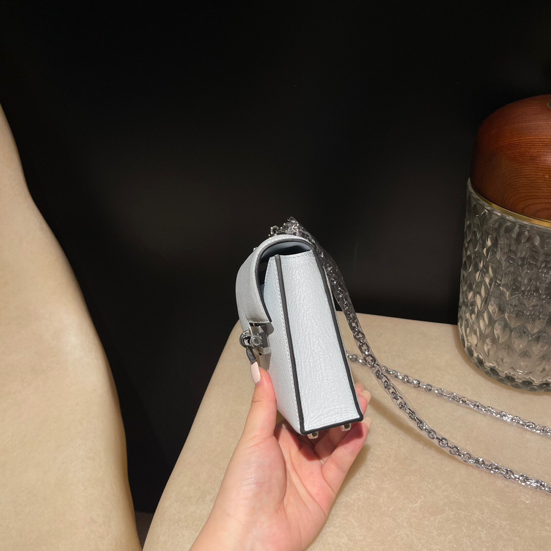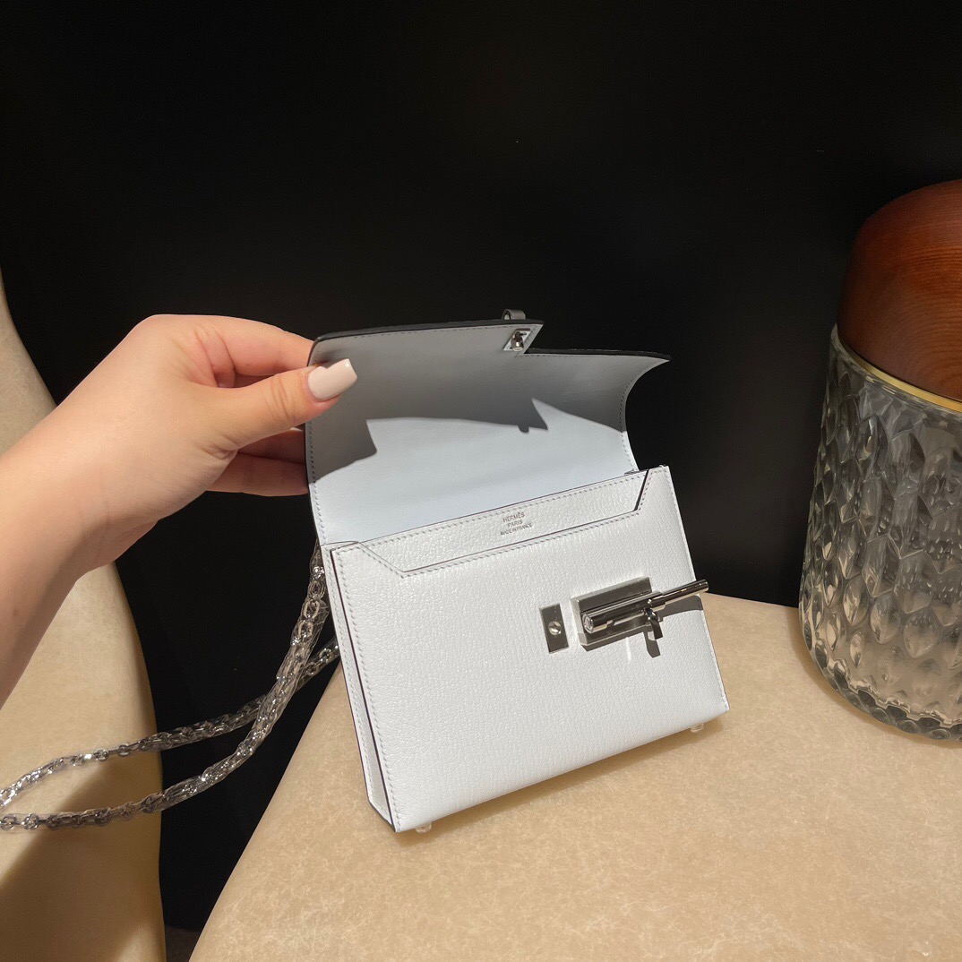 Hermès Verrou Mini 17cm Chevre Mysore T0/Blue Brume verrou17-096 Fully Hand-Stitched