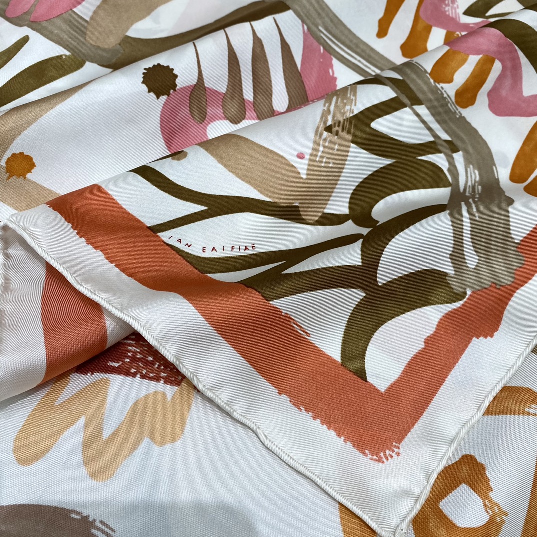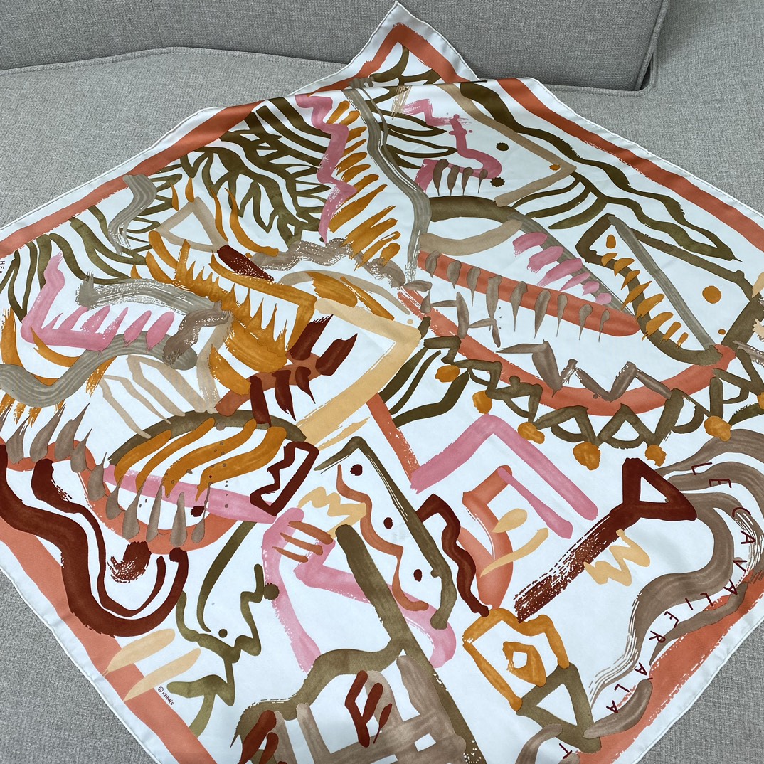 オリジナルスペックの生地を使用!精緻な手作業による縁かがりを施し、配色は高級感あふれるデザインで❤️デザイン内容が鮮明、ラインの存在感も強い特徴を持ちます!デザインのインスピレーションは、中世の写本(マニュスクリプト)、愛と戦争をテーマにした叙情詩の手稿(手書き原稿)、さらに 1960 年代に世界的に評価の高かったポーランドのポスターから得られています。21 世紀の「騎士詩人」として、デザイナーは太く、まるで子供のような天真烂漫な筆致で輪郭を描き、このスカーフに明るく陽気な雰囲気を添えています。