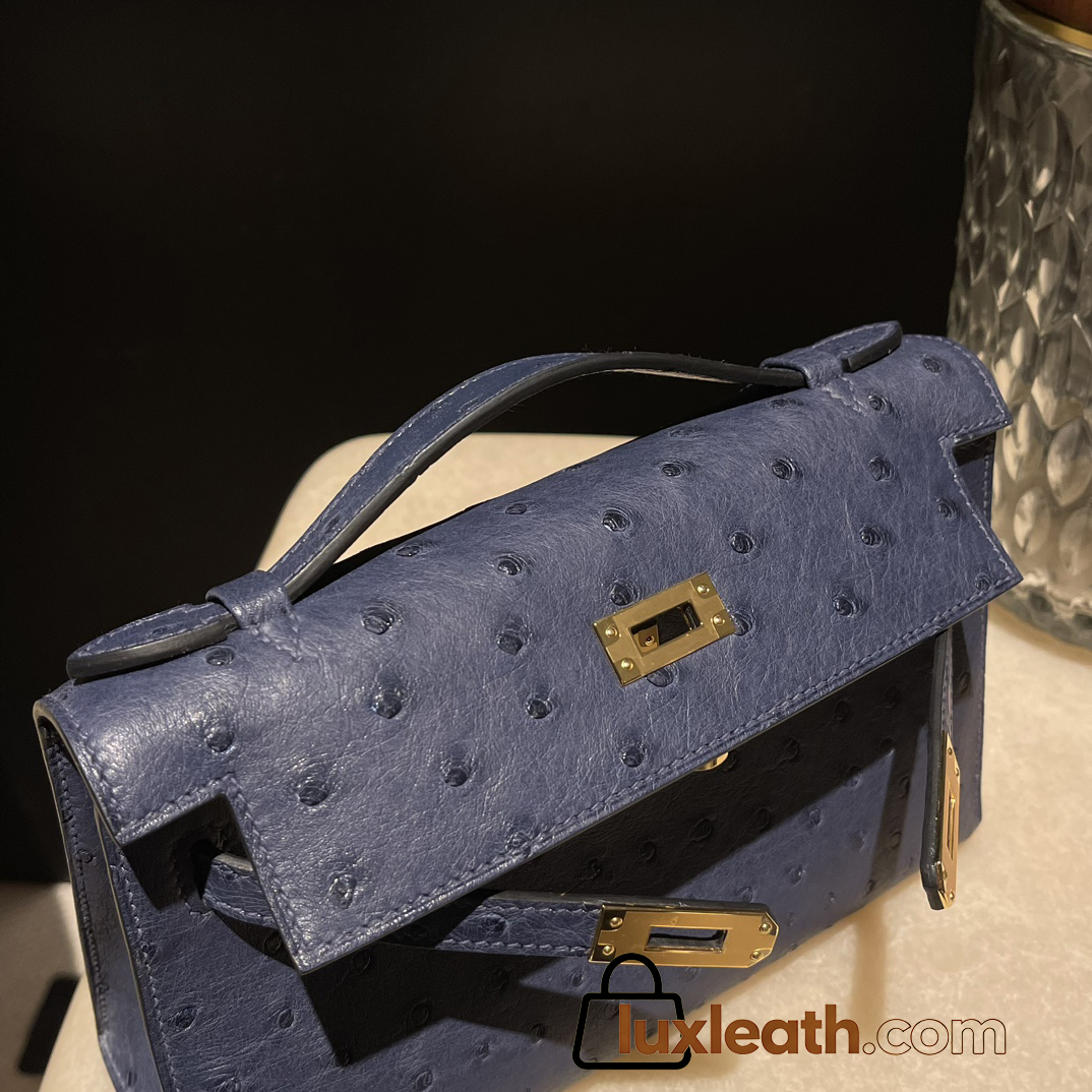 ostrich kelly pochette 73/Blue Saphir