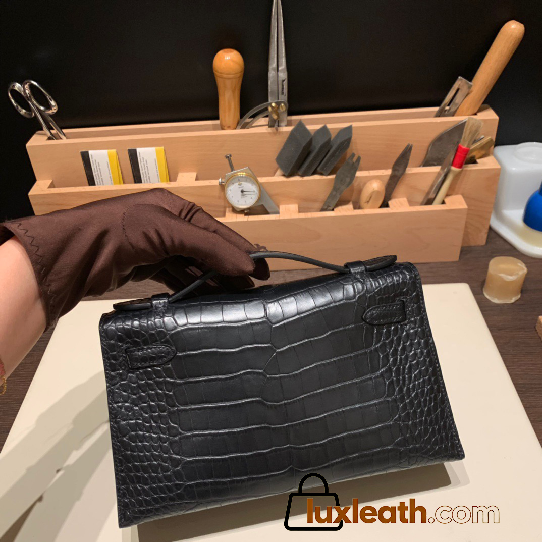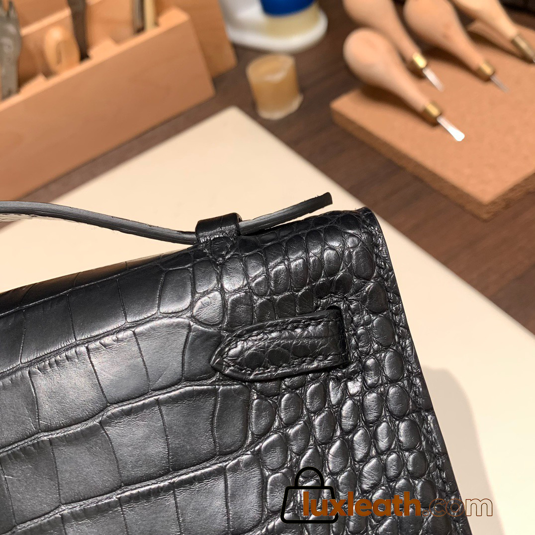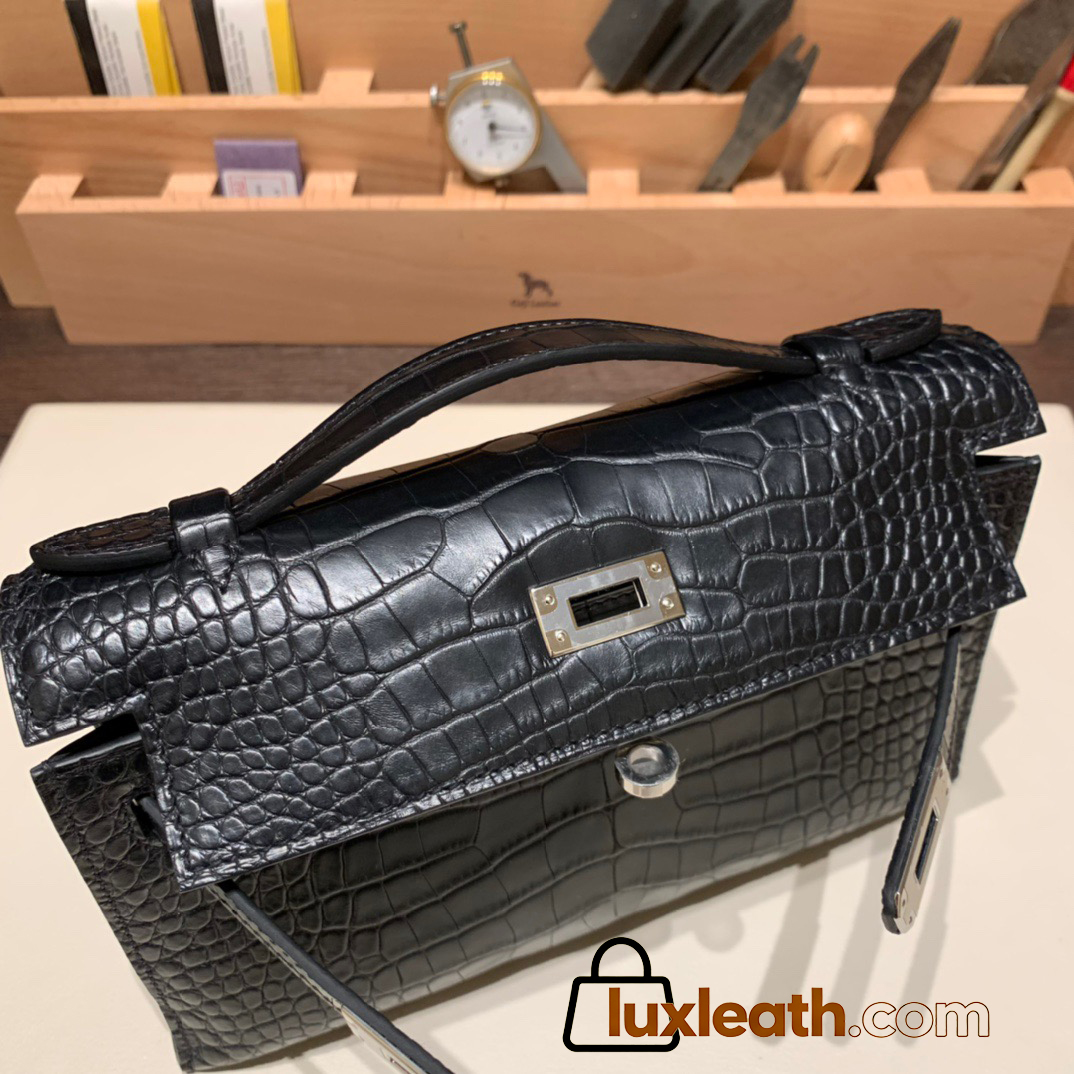89 /Black (Noir) Silver Hardware  kelly pochette  Matte Alligateor