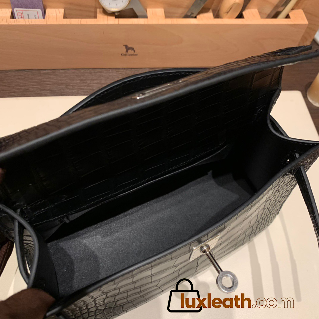 89 /Black (Noir) Silver Hardware kelly pochette Matte Alligateor