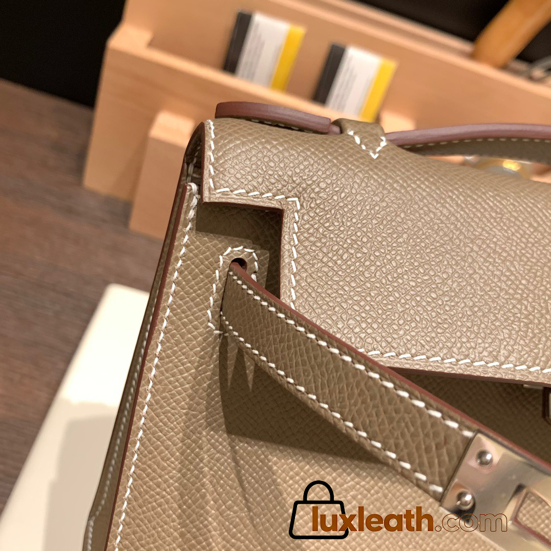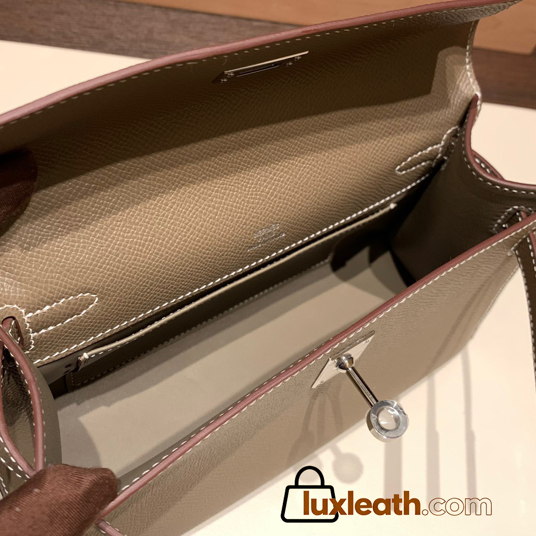 18/Étoupe Grey Silver Hardware kelly pochette Epsom