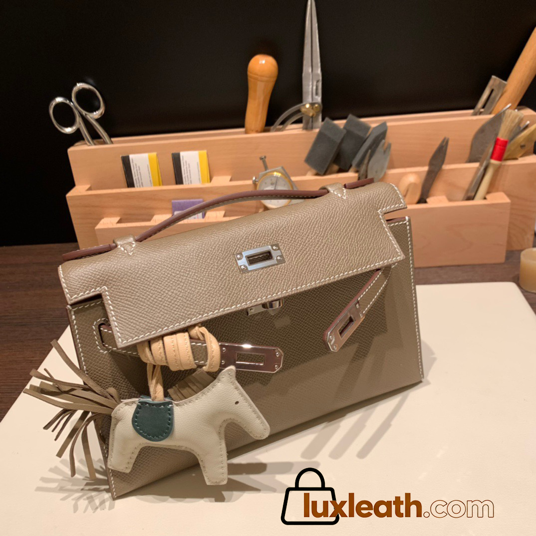 18/Étoupe Grey Silver Hardware  kelly pochette  Epsom