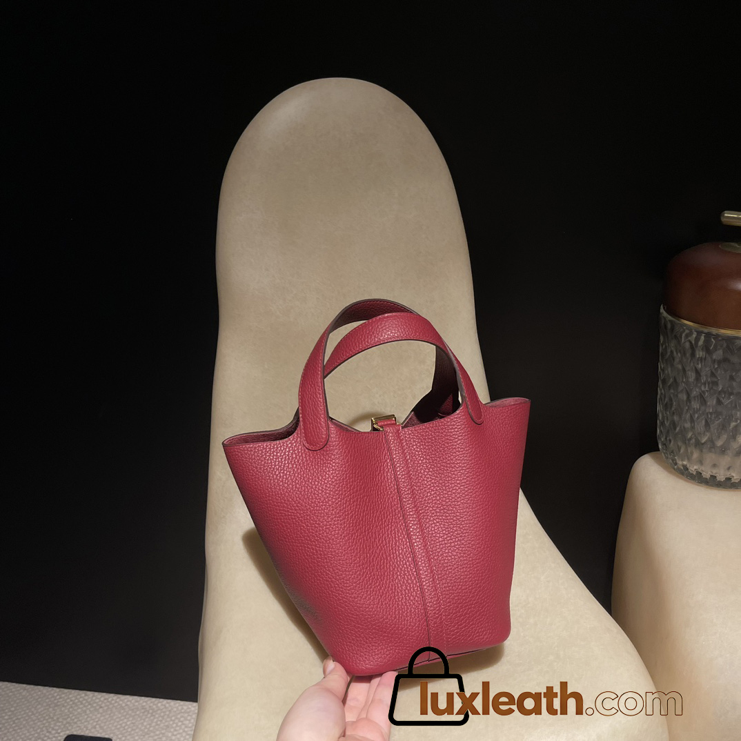 Picotin Lock 18/PM Taurillon Clemence (TC) K1/Rouge Grenat Gold Hardware Fully Hand-Stitched
