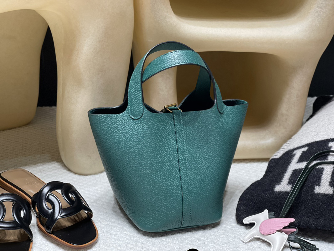 Z6/Malachite Gold Hardware Picotin Lock 18/PM Taurillon Clemence (TC)