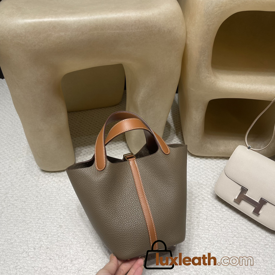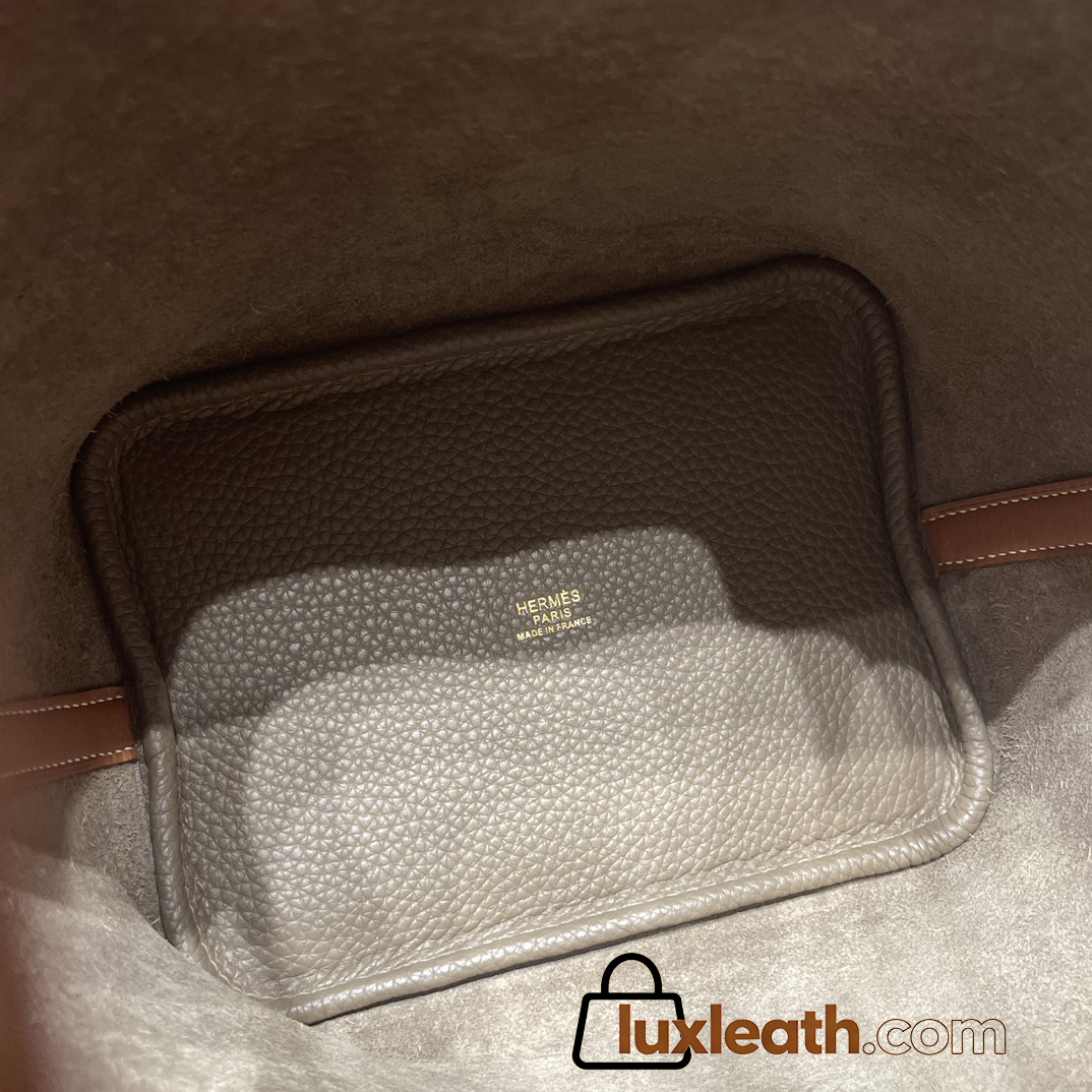 18/Étoupe Grey (Étoupe) & Swift 37/Gold Gold Hardware Picotin Lock 18/PM Taurillon Clemence (TC)